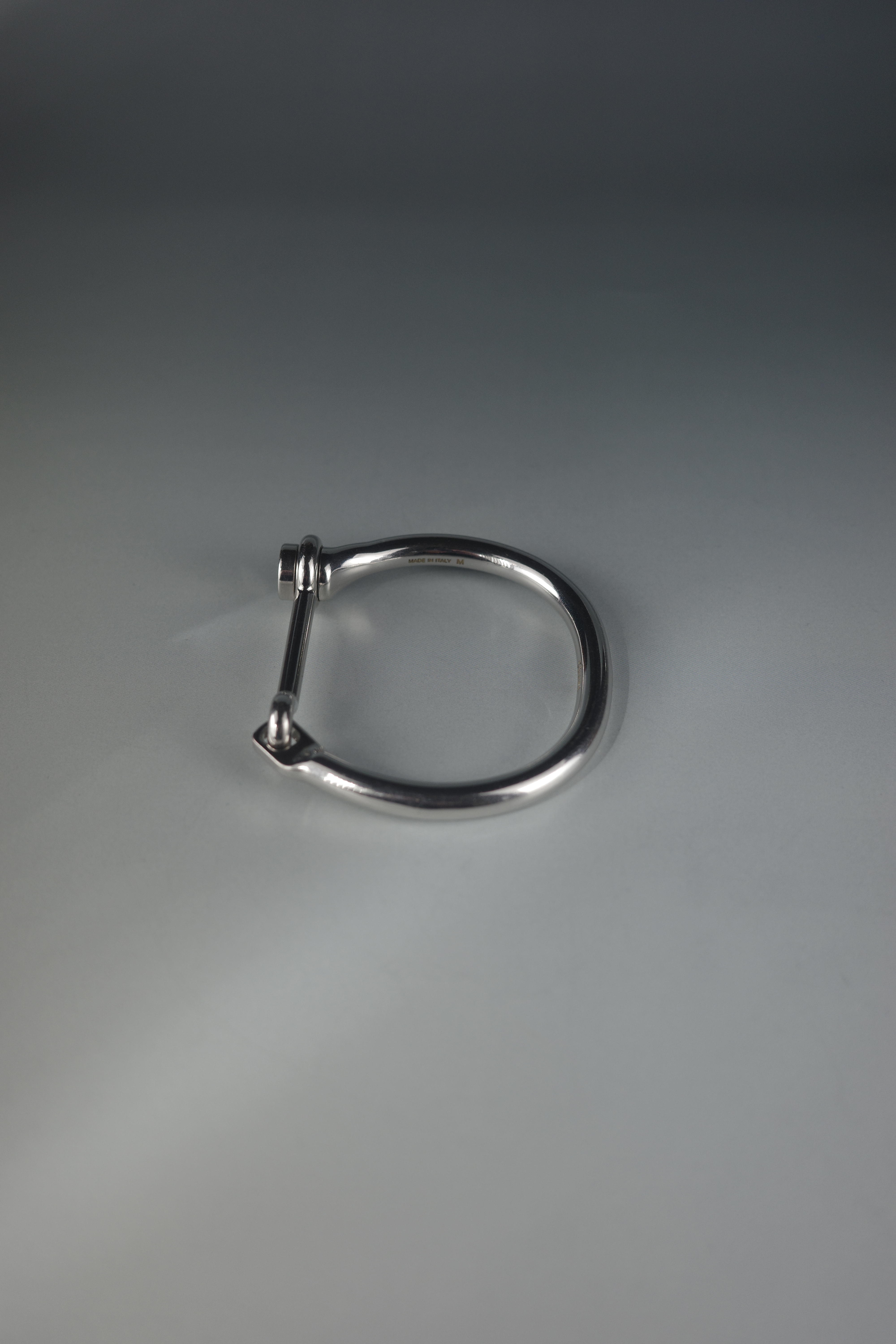 フィービー・ファイロ期のセリーヌを象徴する、ミニマルかつアーティスティックなバングル。無駄を削ぎ落としたシルエットに、バーと円を組み合わせたアイコニックなディテールが際立つデザイン。現在では稀少性の高い、コレクター必見のアイテムです。
