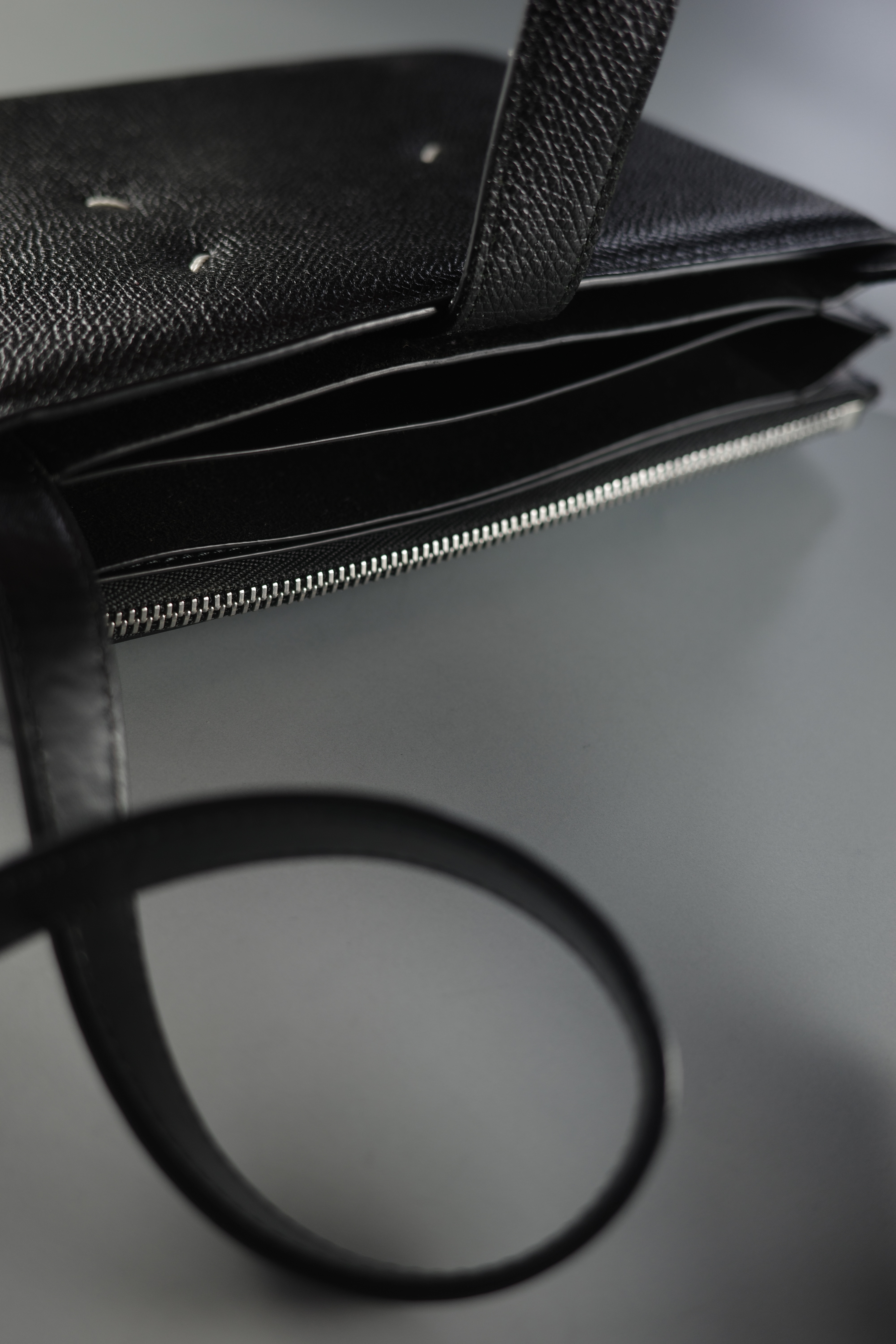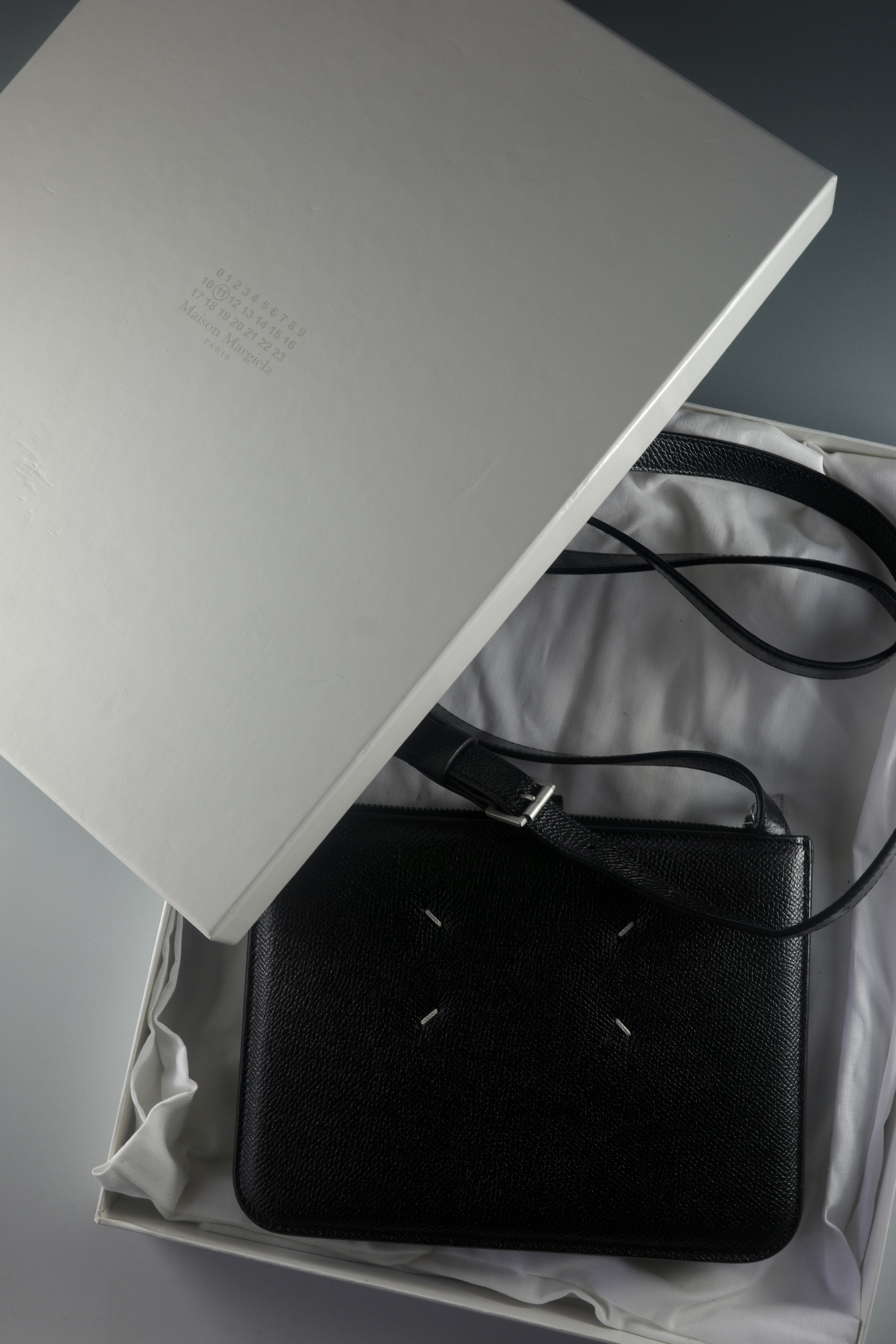メゾンマルジェラを象徴する4つのステッチが印象的なレザーサコッシュ。ミニマルで洗練されたデザインながら、上質なレザーの質感が存在感を放つアイテム。必要最低限の荷物をスマートに持ち運べるサイズ感でデイリーに活用しやすく、調整可能なストラップでショルダーやクロスボディとしても使用できる利便性の高いバッグ。