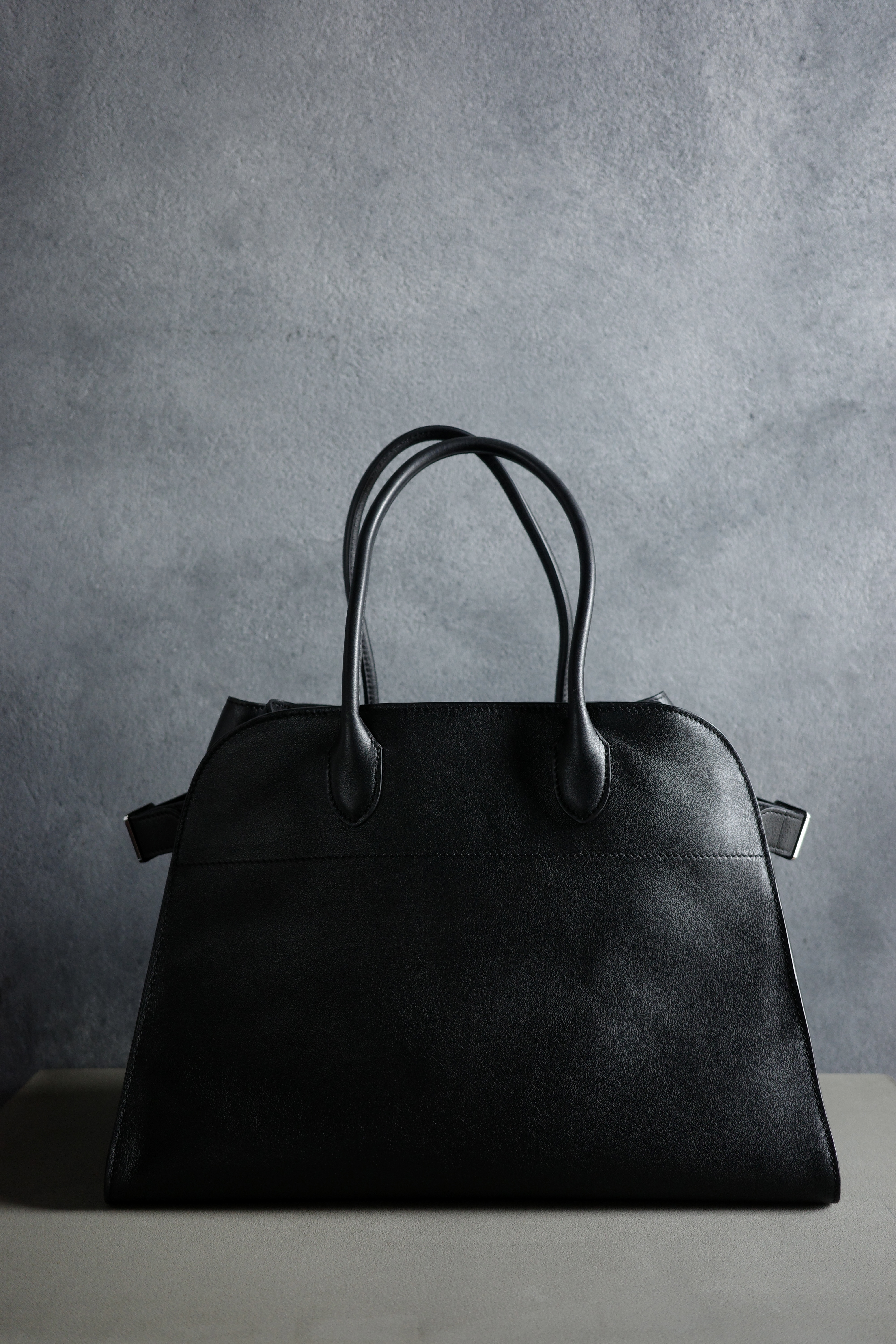 上質なサドルレザーを用いたTHE ROWのアイコンバッグ「Margaux(マルゴー)」 。極めてミニマルなデザインの中に、サドルレザーならではの重厚な質感と艶が控えめながらも存在感を放ち、ブランドが追求する“静かな贅沢”を体現する逸品。ハンドルやベルトのディテールも丁寧に仕立てられ、クラフトマンシップの高さを感じられます。容量の大きな15サイズはユニセックスで使用可能。オンオフ問わず持つ人のスタイルを引き立てる、THE ROWを象徴するタイムレスなバッグ。