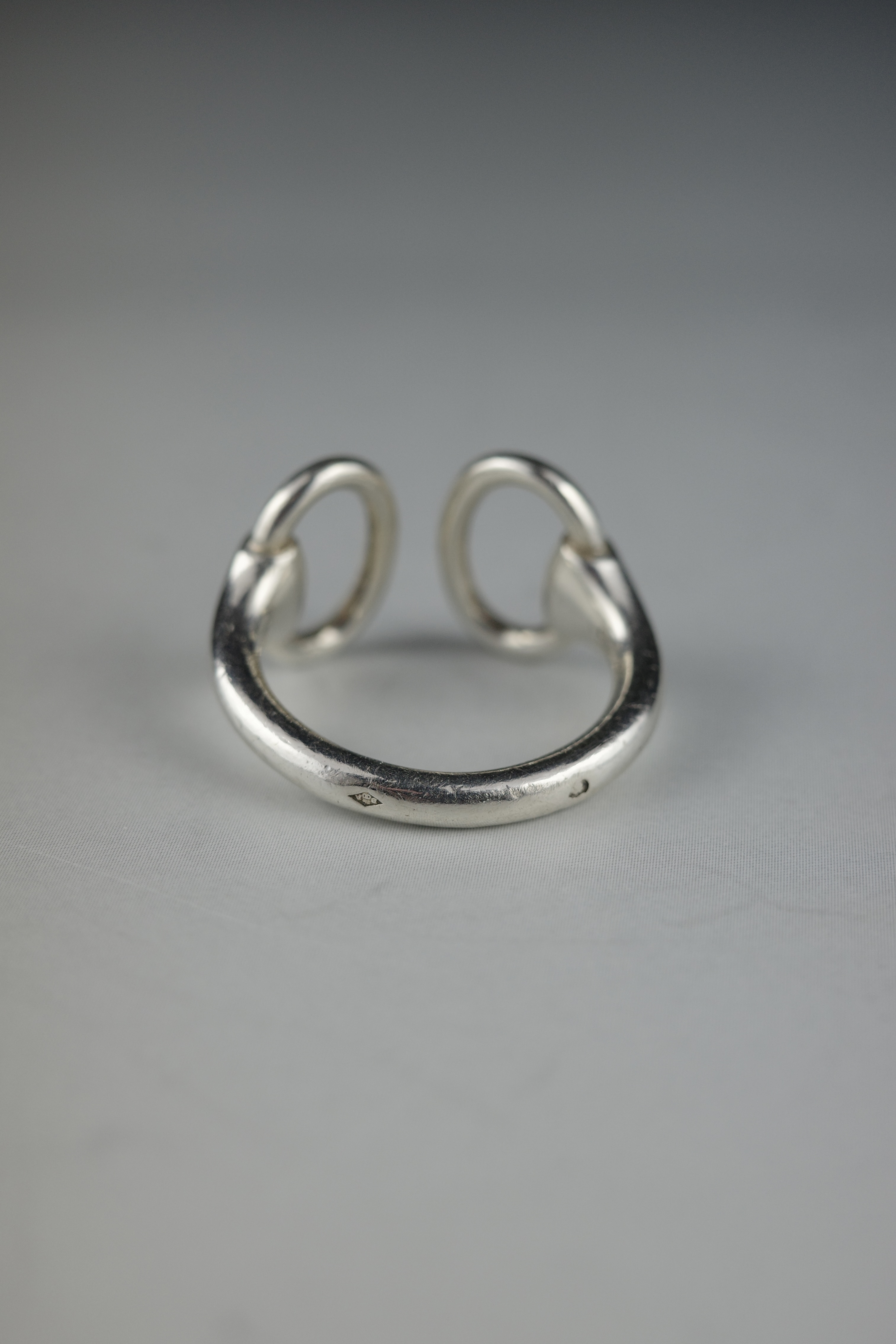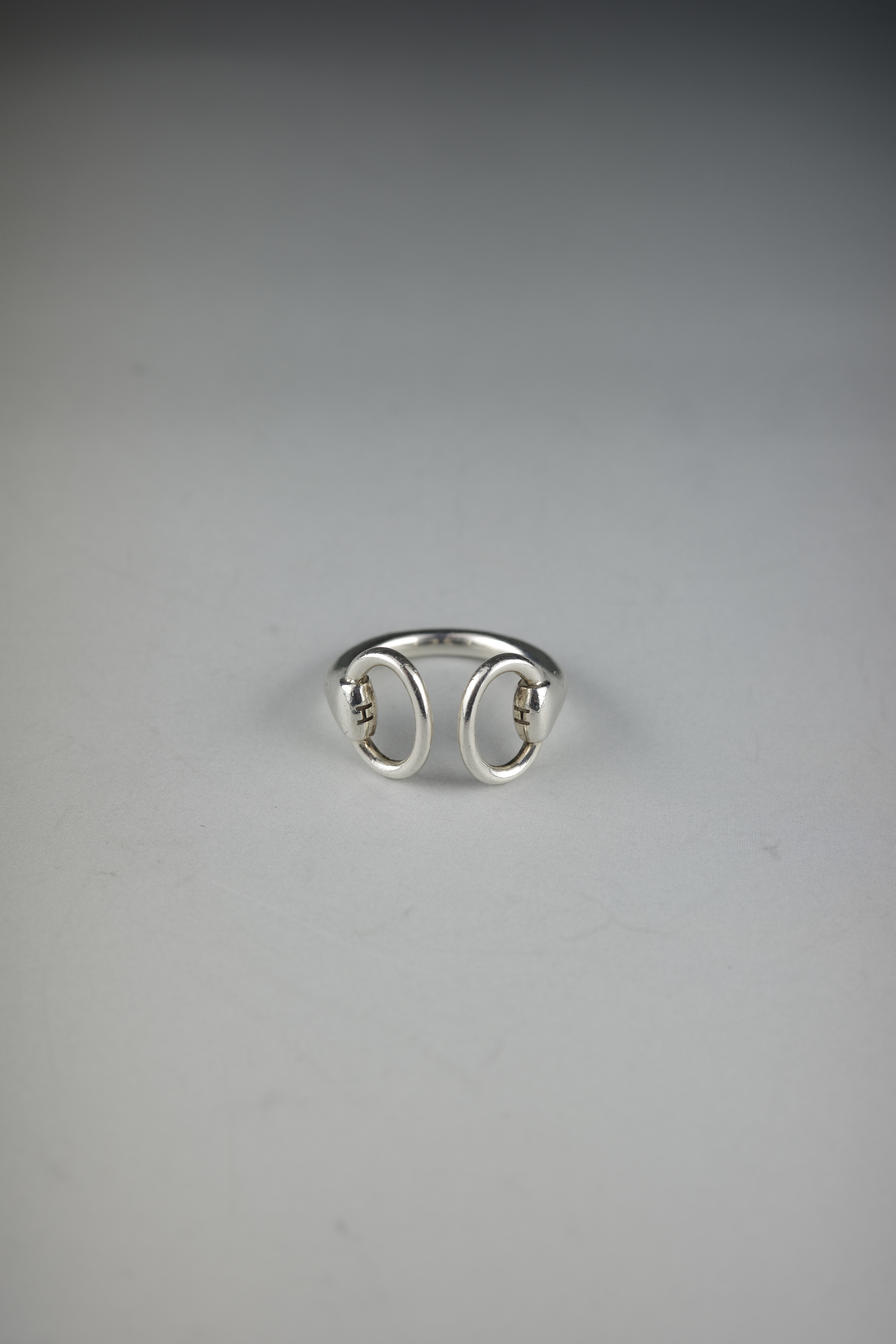 1971年にジャン=ルイジ・デュマによってデザインされた「ナウシカ」リング。ブランドを象徴するホースビットモチーフを、洗練されたミニマルな構成で指元に落とし込んだデザイン。シルバーの力強さと柔らかく有機的な造形美は、ヴィンテージでありながら現代のスタイルに自然に馴染むアイテム。