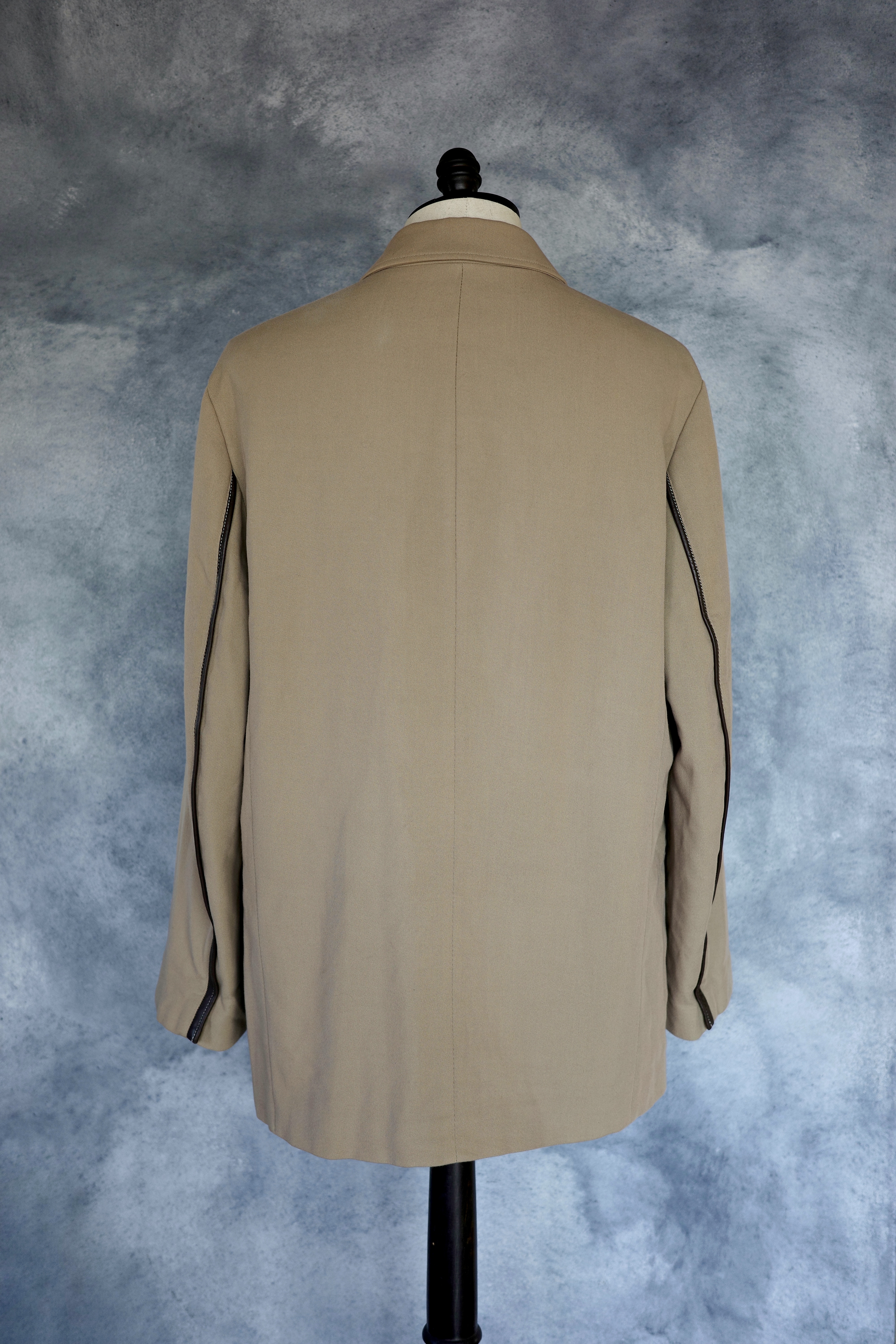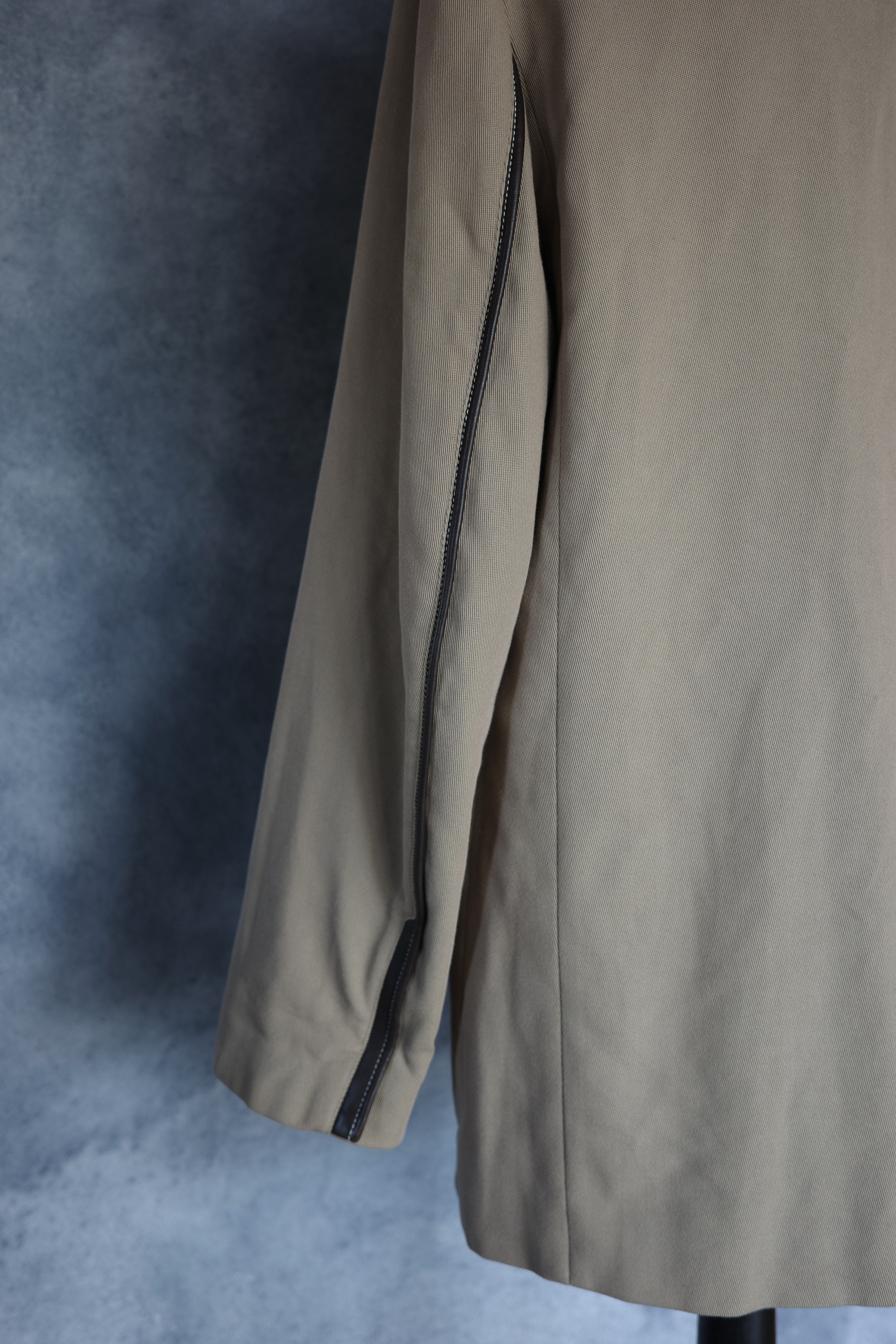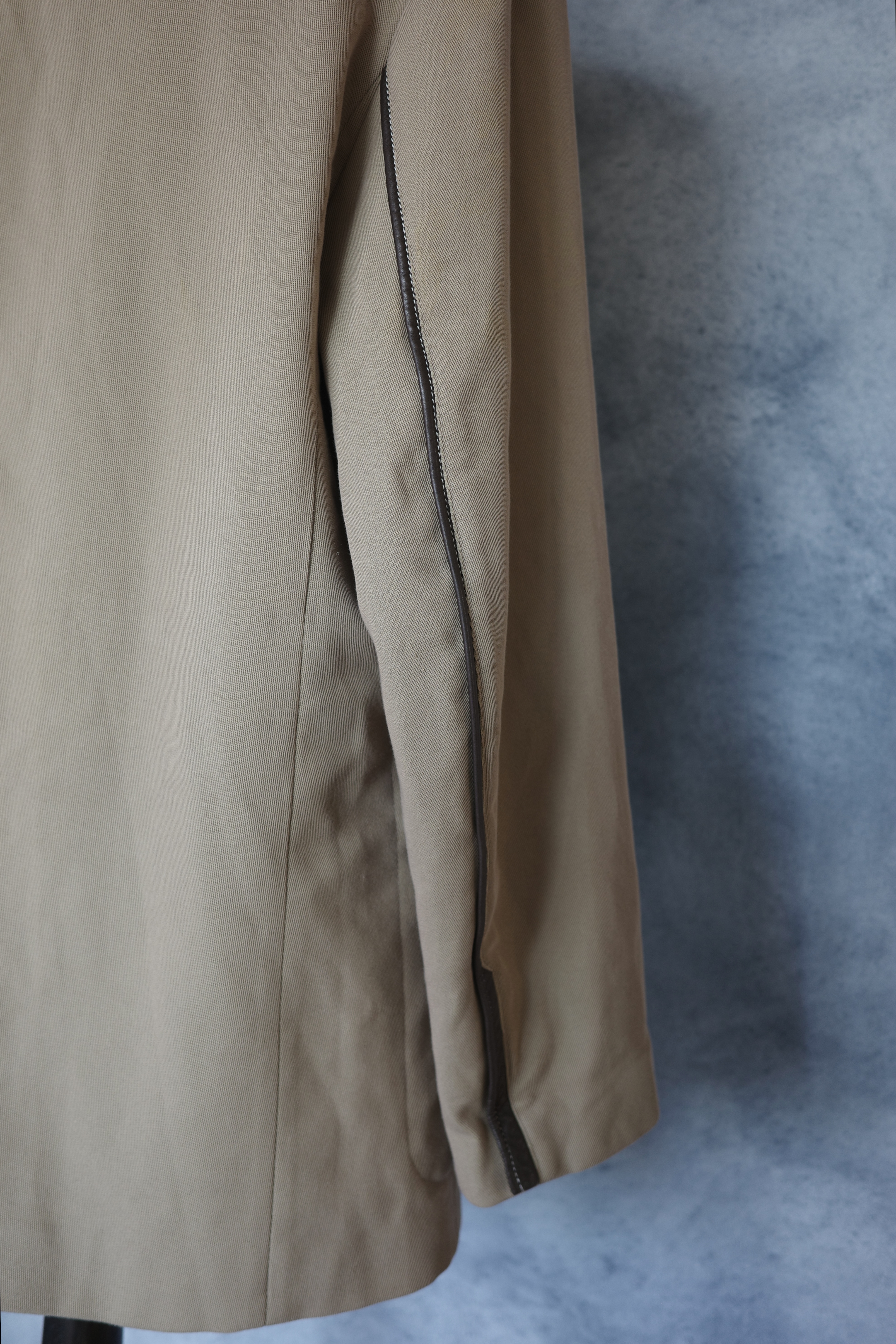 ミニマルな佇まいの中に、エルメスらしい仕立ての良さが際立つジップフロントジャケット。フロントはすっきりとしたジップ仕様で、羽織った際のシルエットも非常に美しい一着。アーム内側にはレザーのパイピングが施され、動きに合わせてさりげなく覗く異素材使いが上品なアクセント。本アイテムは「ジャン=ポール・ゴルチエ」がエルメスのクリエイティブ・ディレクターを手掛けていた時代(2004–2011年)のプロダクト。実用性の中にエレガンスを感じさせる、ゴルチエ期らしい洗練されたデザインが魅力のアーカイブピース。