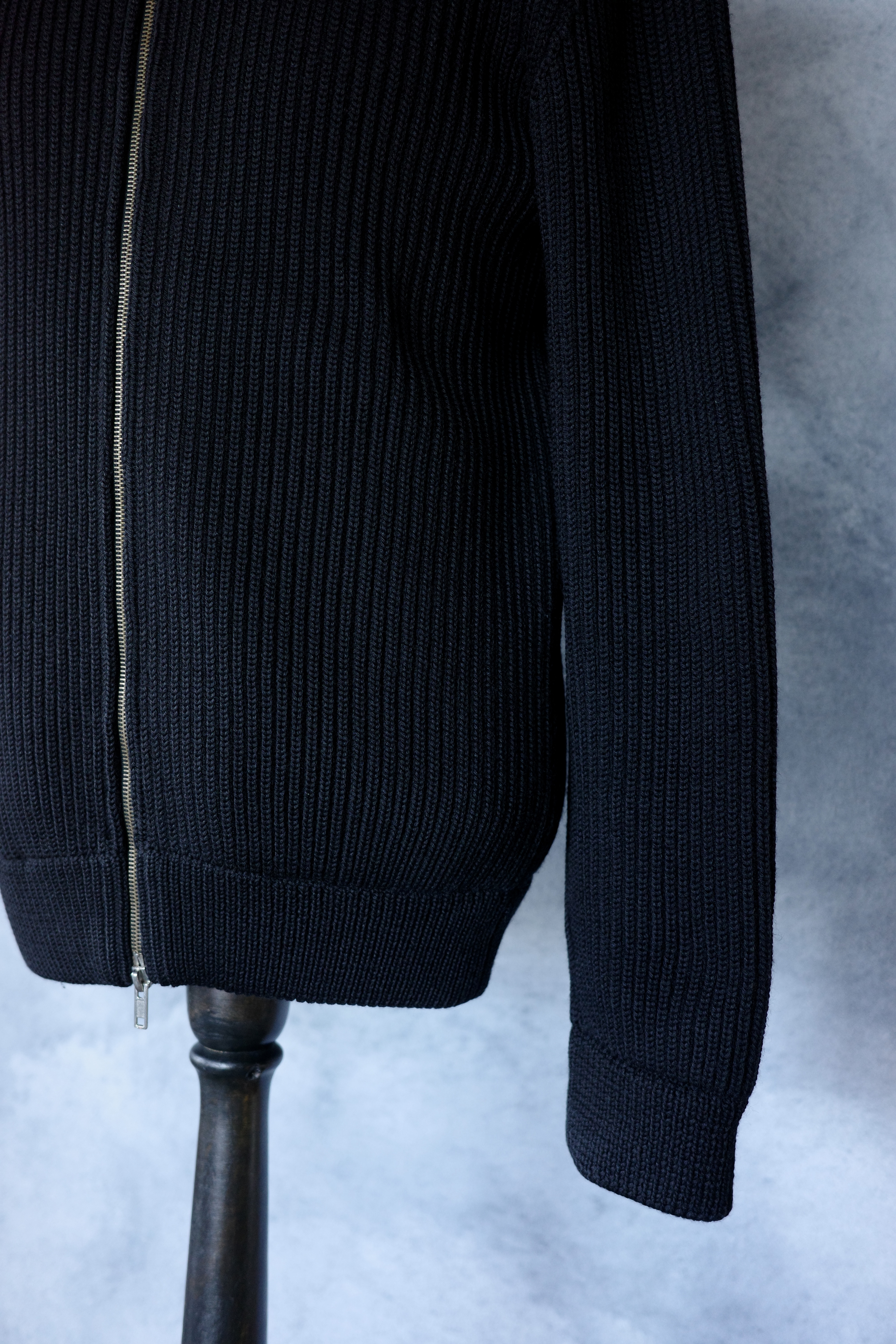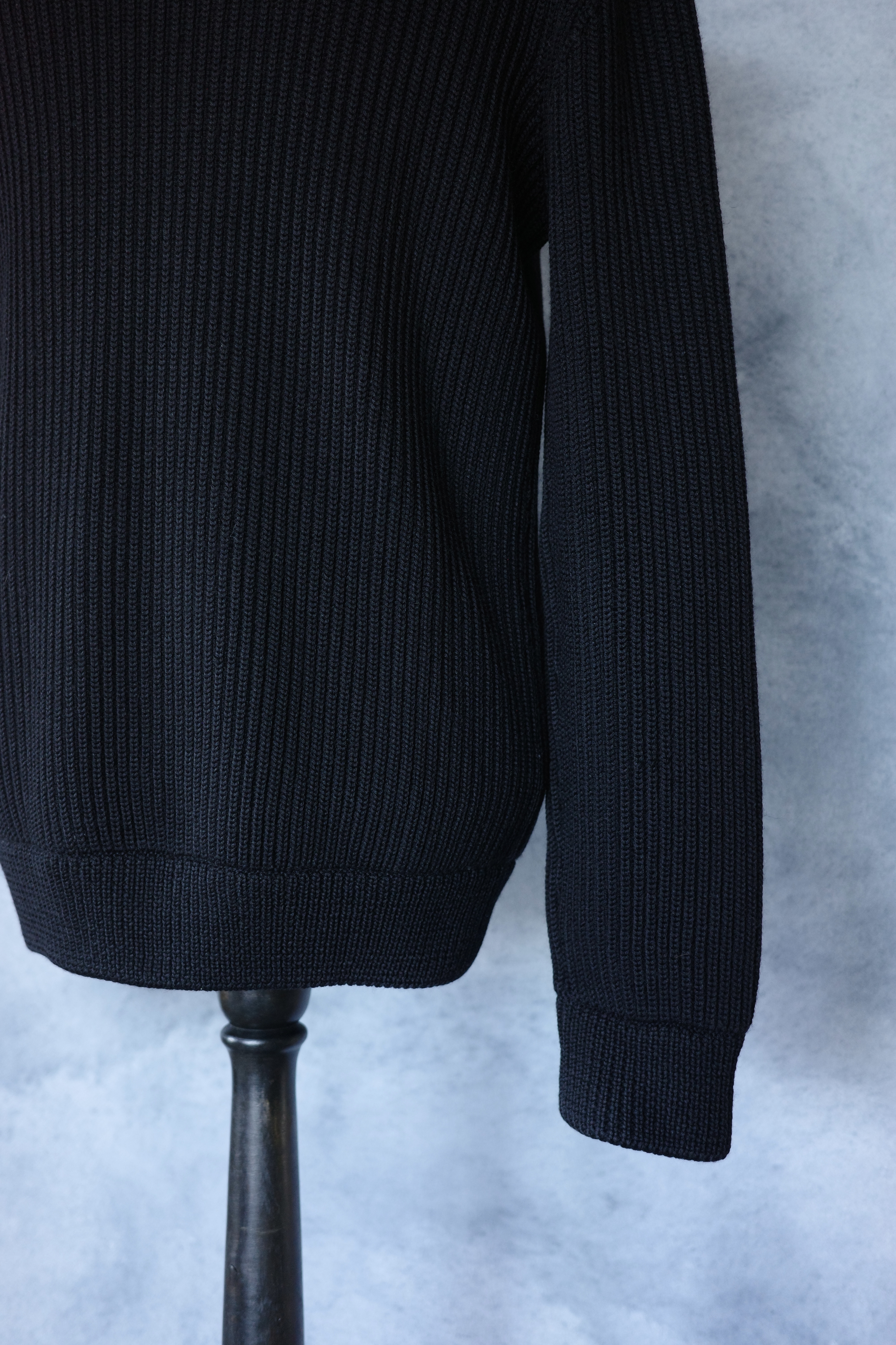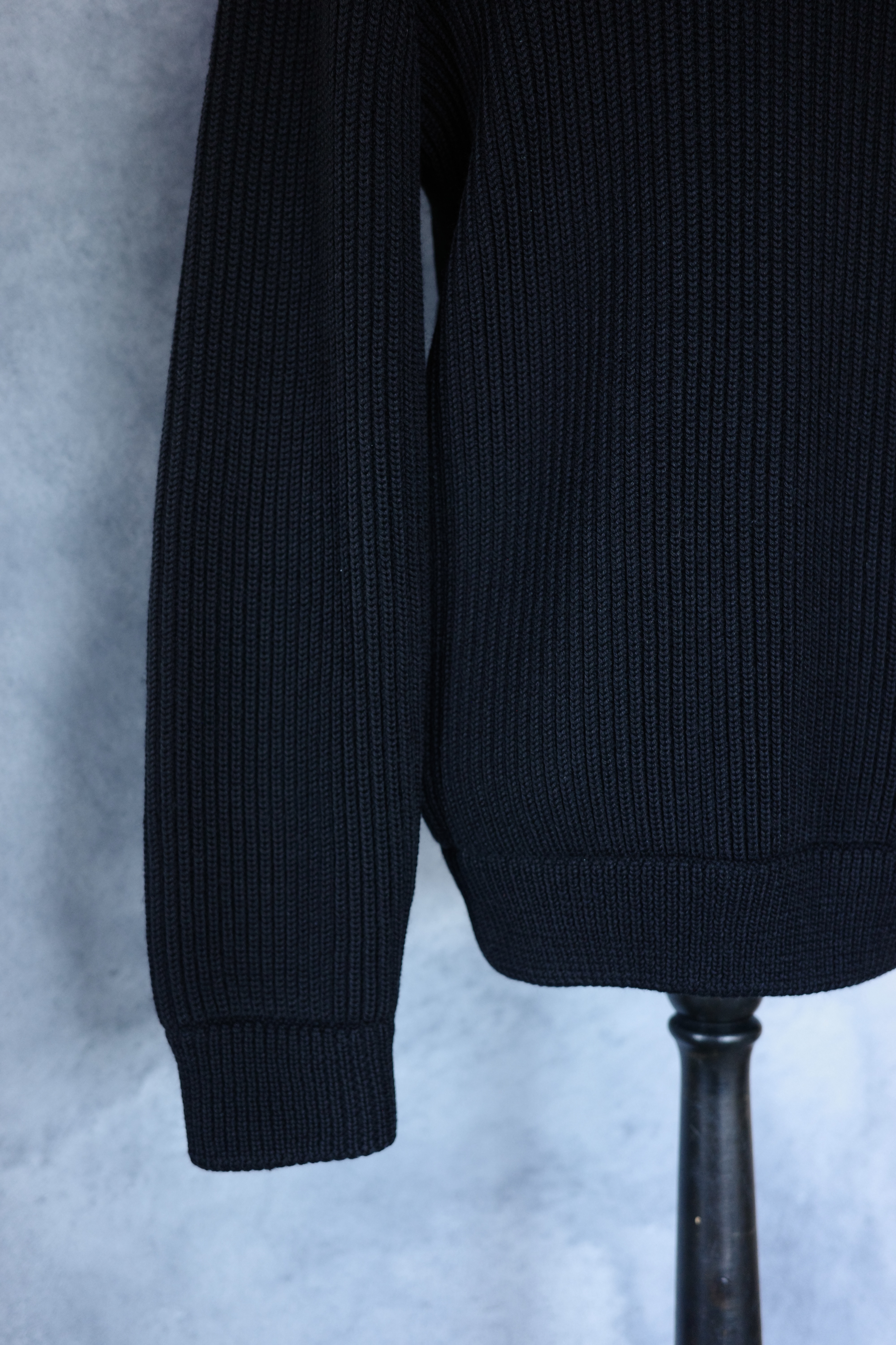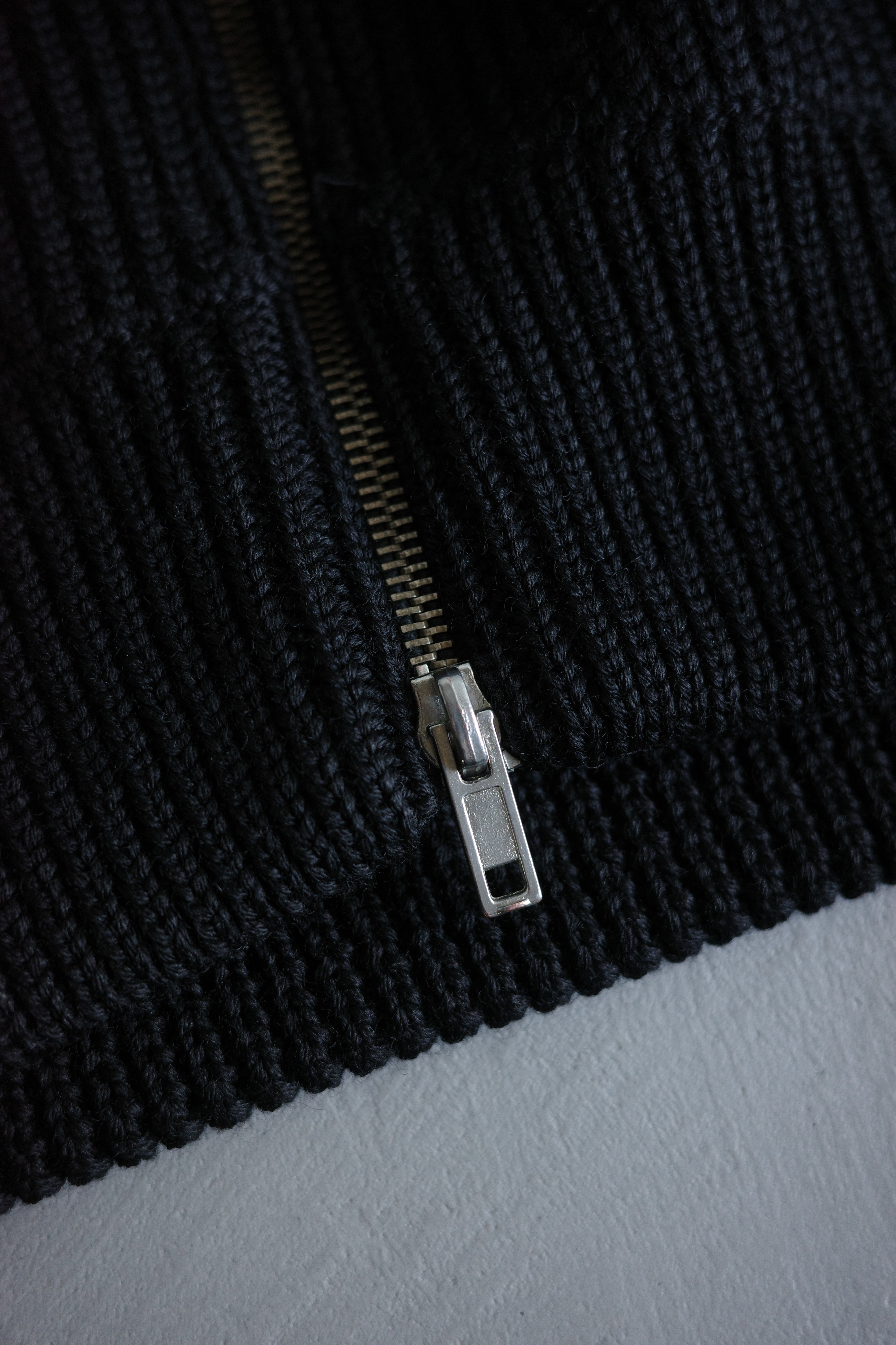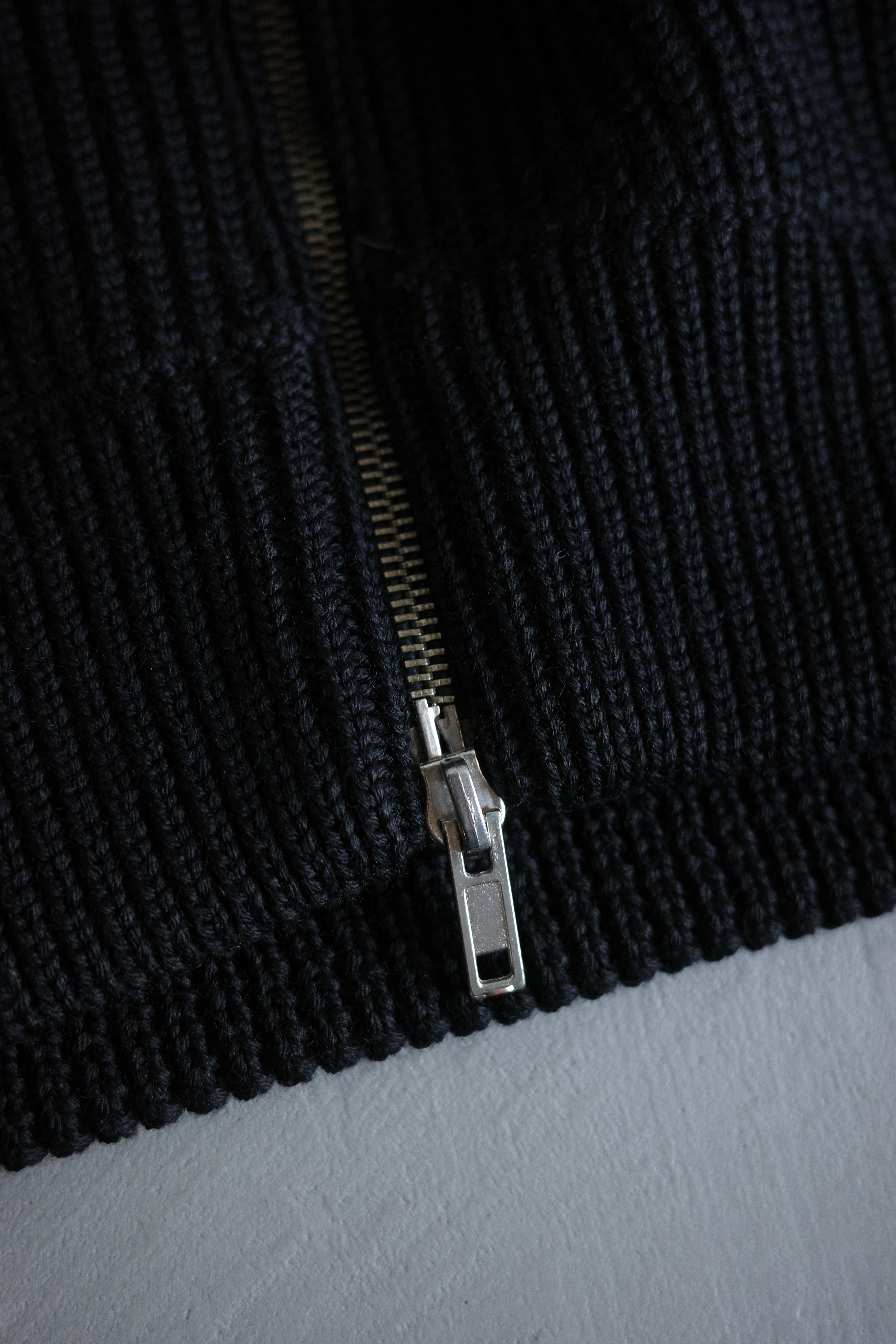 メゾンマルタンマルジェラを象徴するアイコンピース「ドライバーズニット」。こちらは、ブランドの空気感が最も濃く残る2004A/W期のアイテム。マルタン・マルジェラ本人がクリエイションを手掛けていた時代ならではの、コンセプトと実用性が共存した逸品。フロントにはダブルジップ仕様のハイネックデザインを採用。開閉によって表情を変え、インナー・アウターの両面で高い汎用性を備えています。上質なウール素材を用いた当時特有のしっかりとした編み地は、着用時には美しいシルエットを描き、経年を経ても色褪せない存在感を放ちます。流行に左右されることなく、長くワードローブの軸として活躍する一着。アーカイブピースとしての価値も高い、特別感のあるドライバーズニットです。