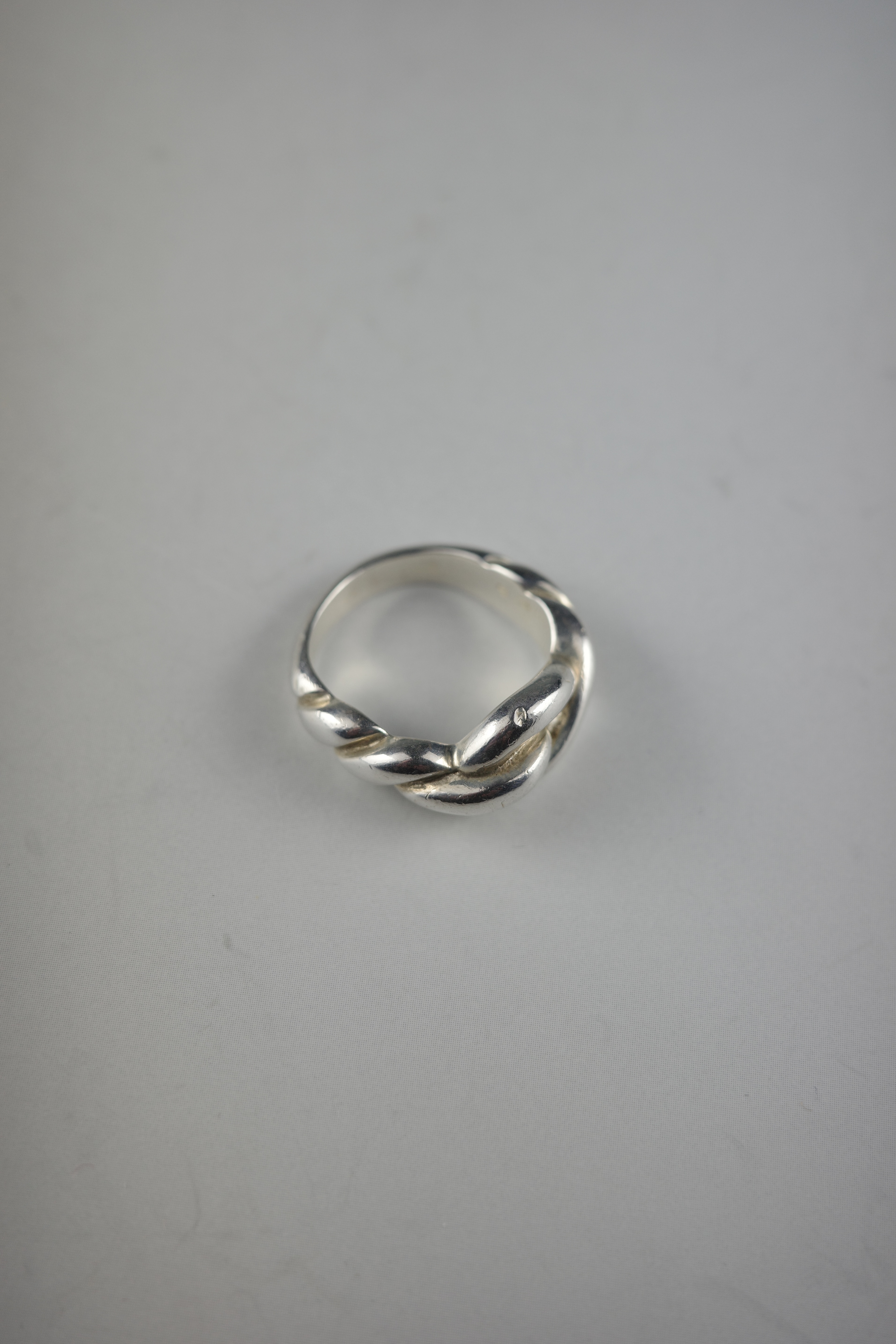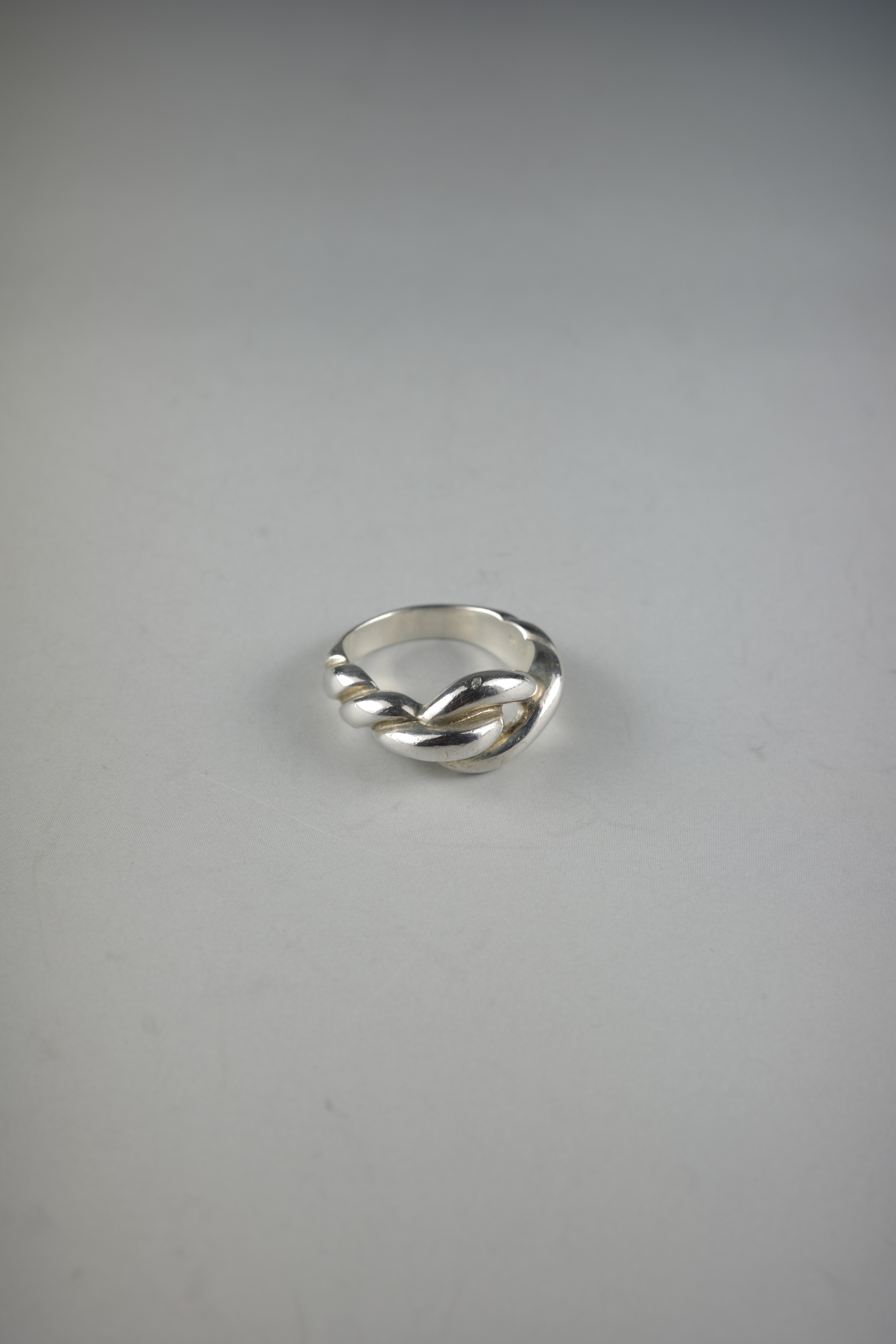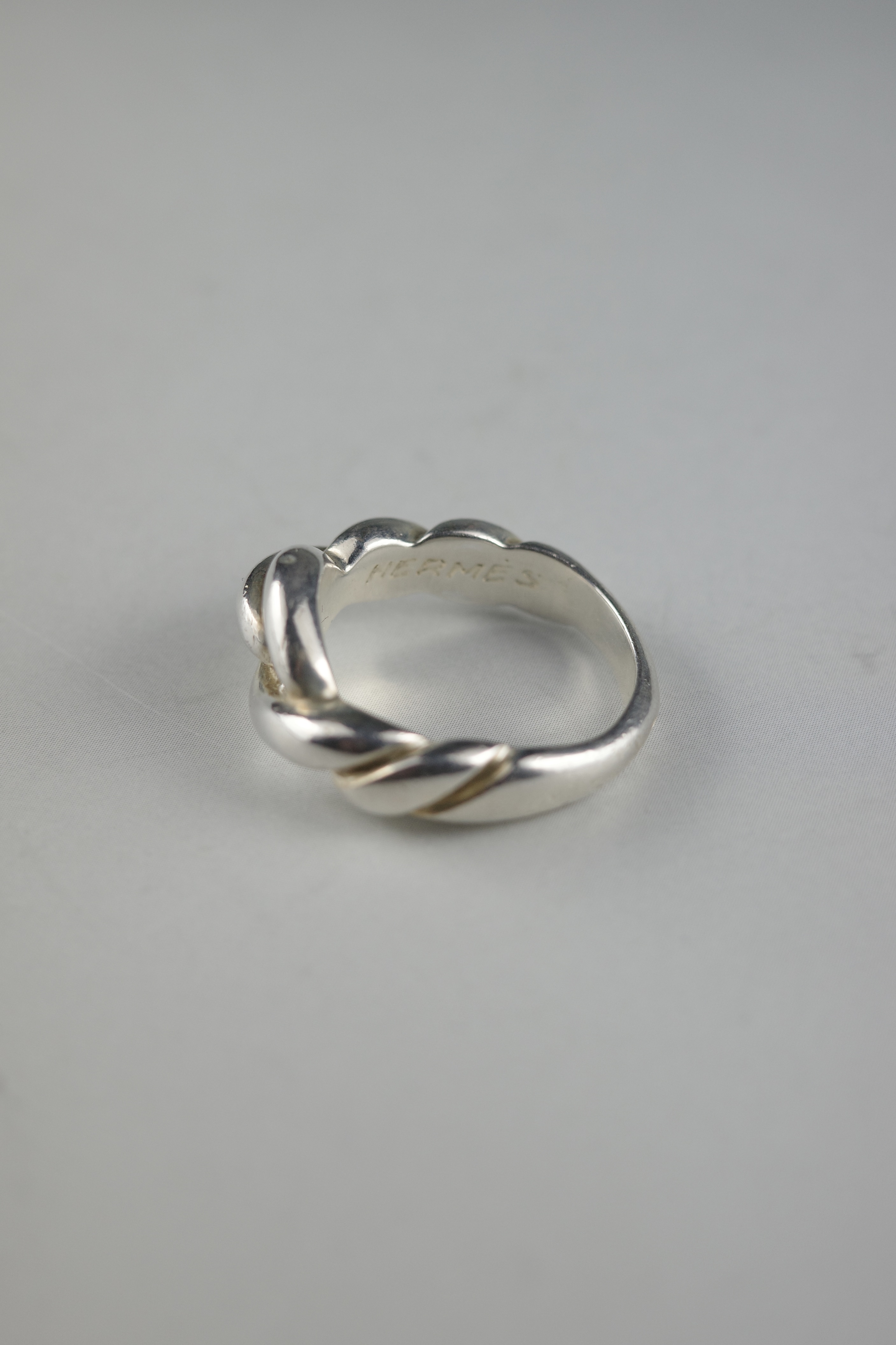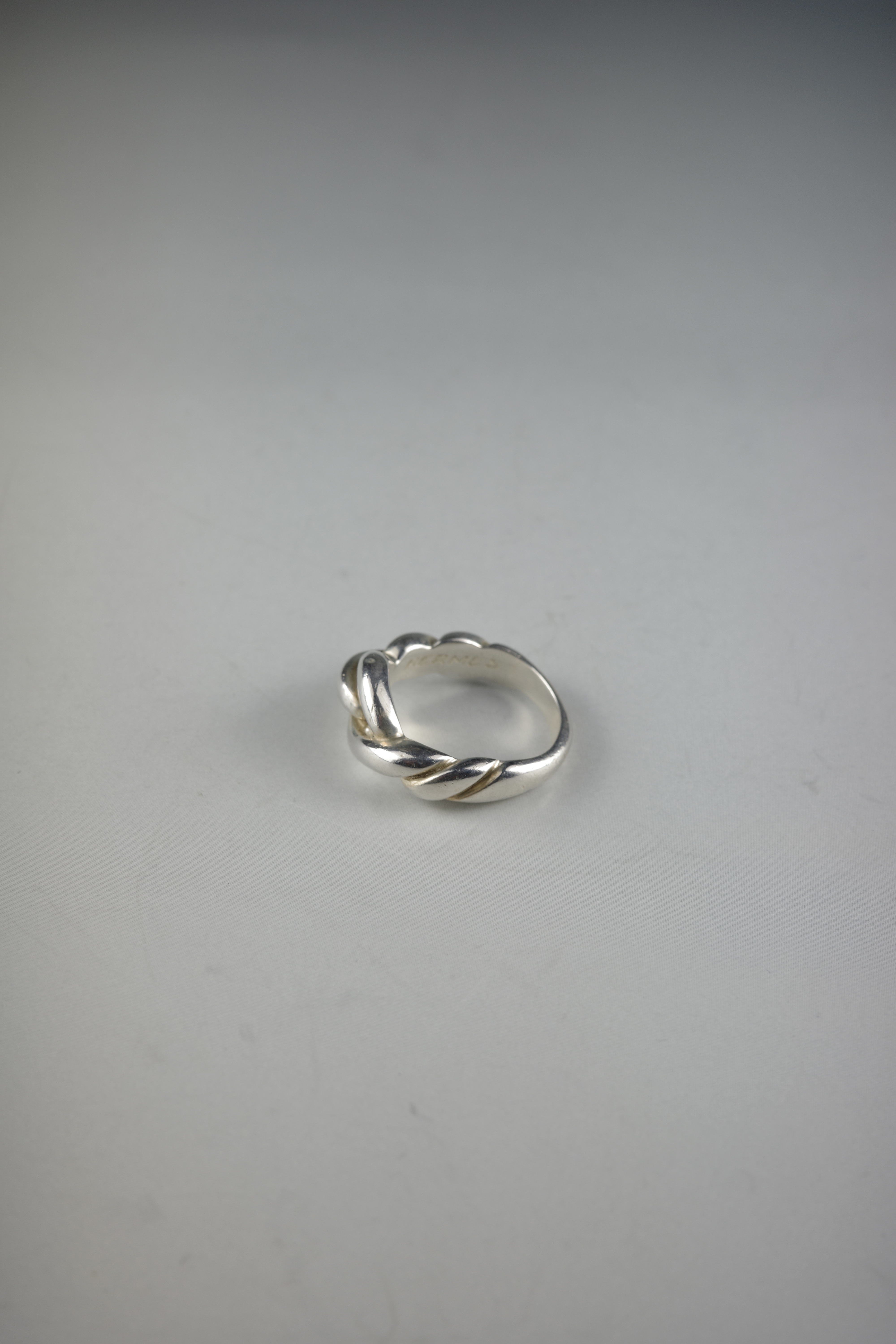 エルメスを象徴するモチーフのひとつ「トルサード(Torsade)」のデザインをリングに落とし込んだヴィンテージピース。トルサードはフランス語で“ねじれ”を意味し、ロープを編み込んだような有機的な曲線が特徴。一見シンプルでありながら、エルメスらしい造形美と職人技が感じられる仕上がりのアイテムです。