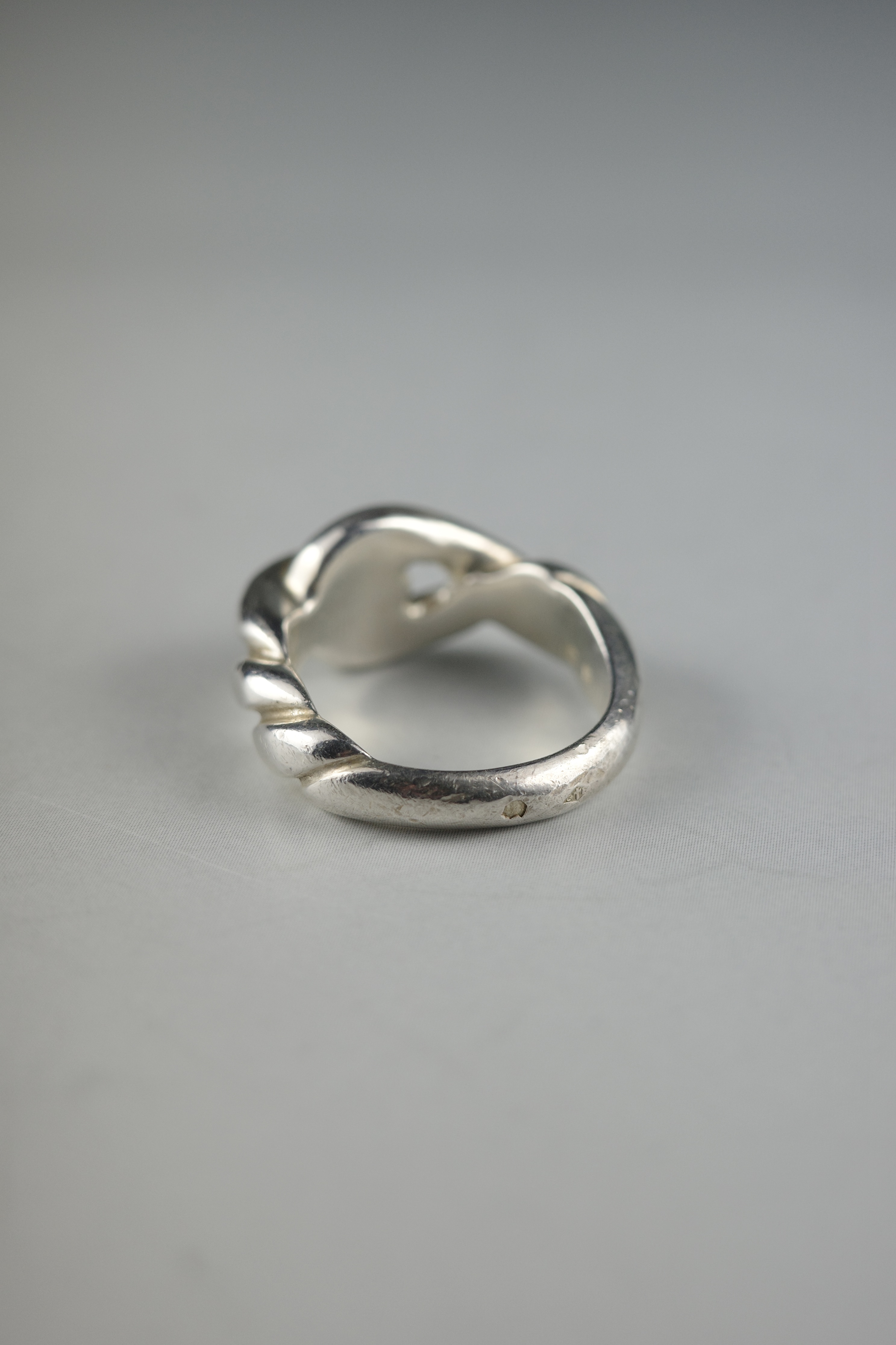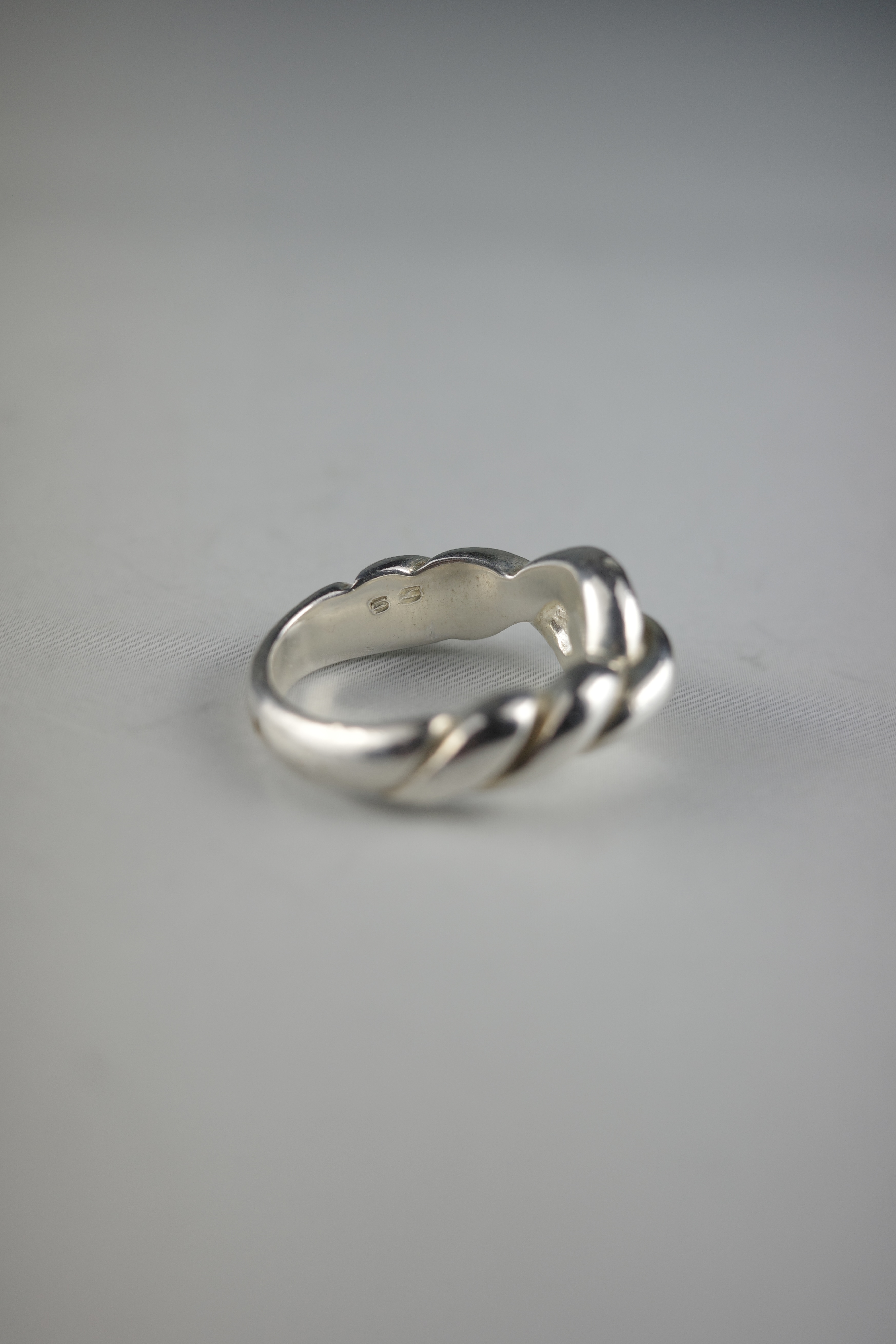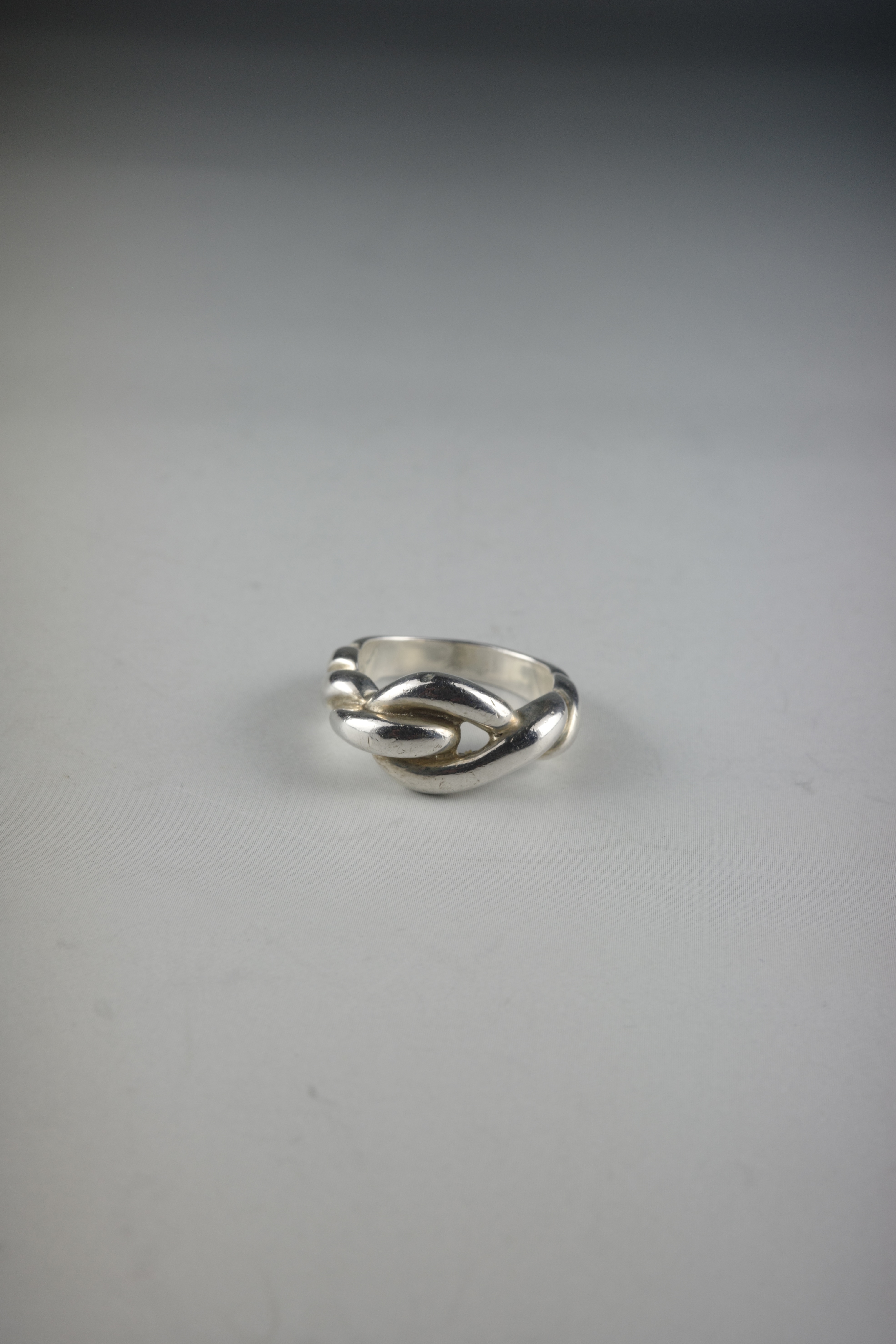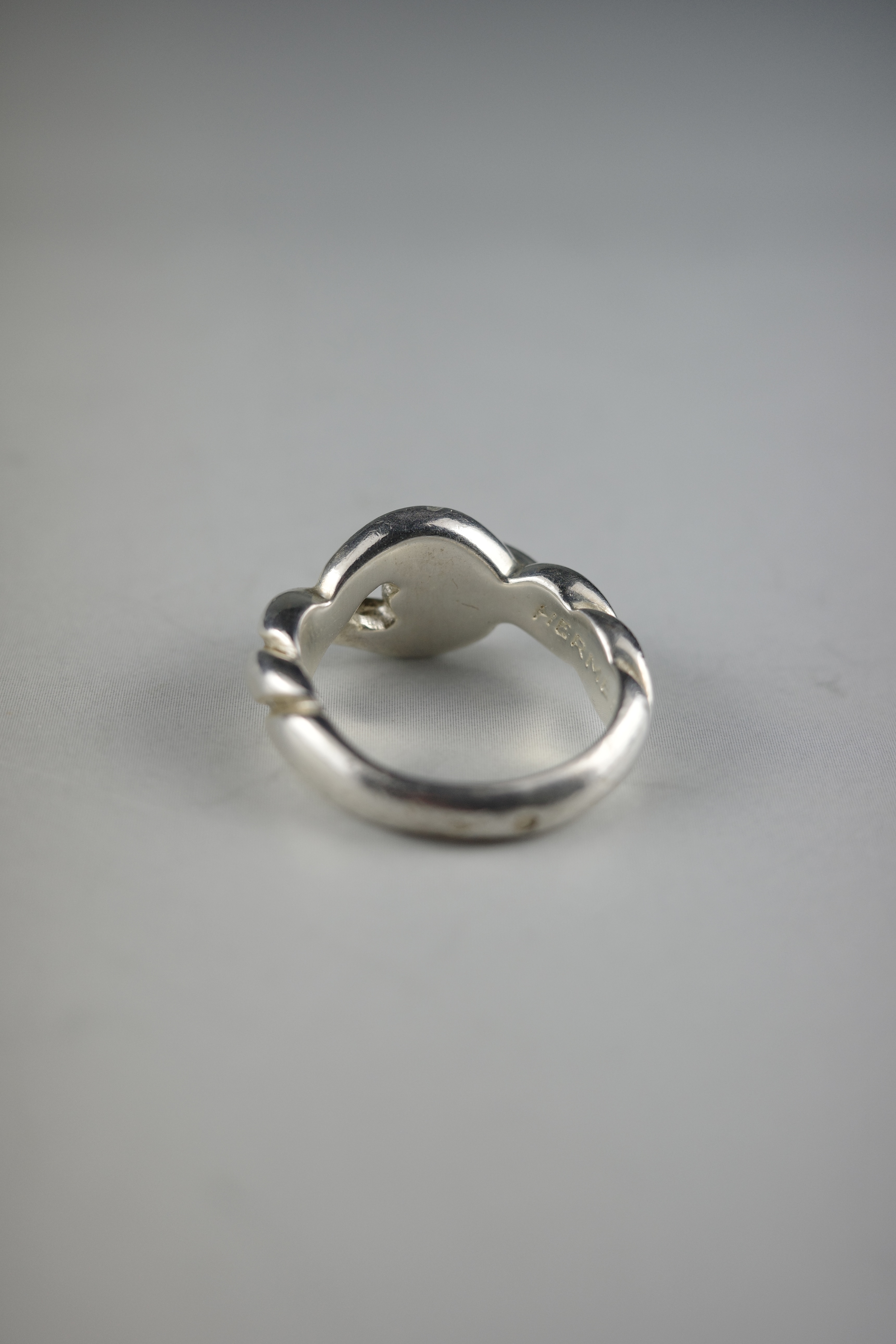 エルメスを象徴するモチーフのひとつ「トルサード(Torsade)」のデザインをリングに落とし込んだヴィンテージピース。トルサードはフランス語で“ねじれ”を意味し、ロープを編み込んだような有機的な曲線が特徴。一見シンプルでありながら、エルメスらしい造形美と職人技が感じられる仕上がりのアイテムです。