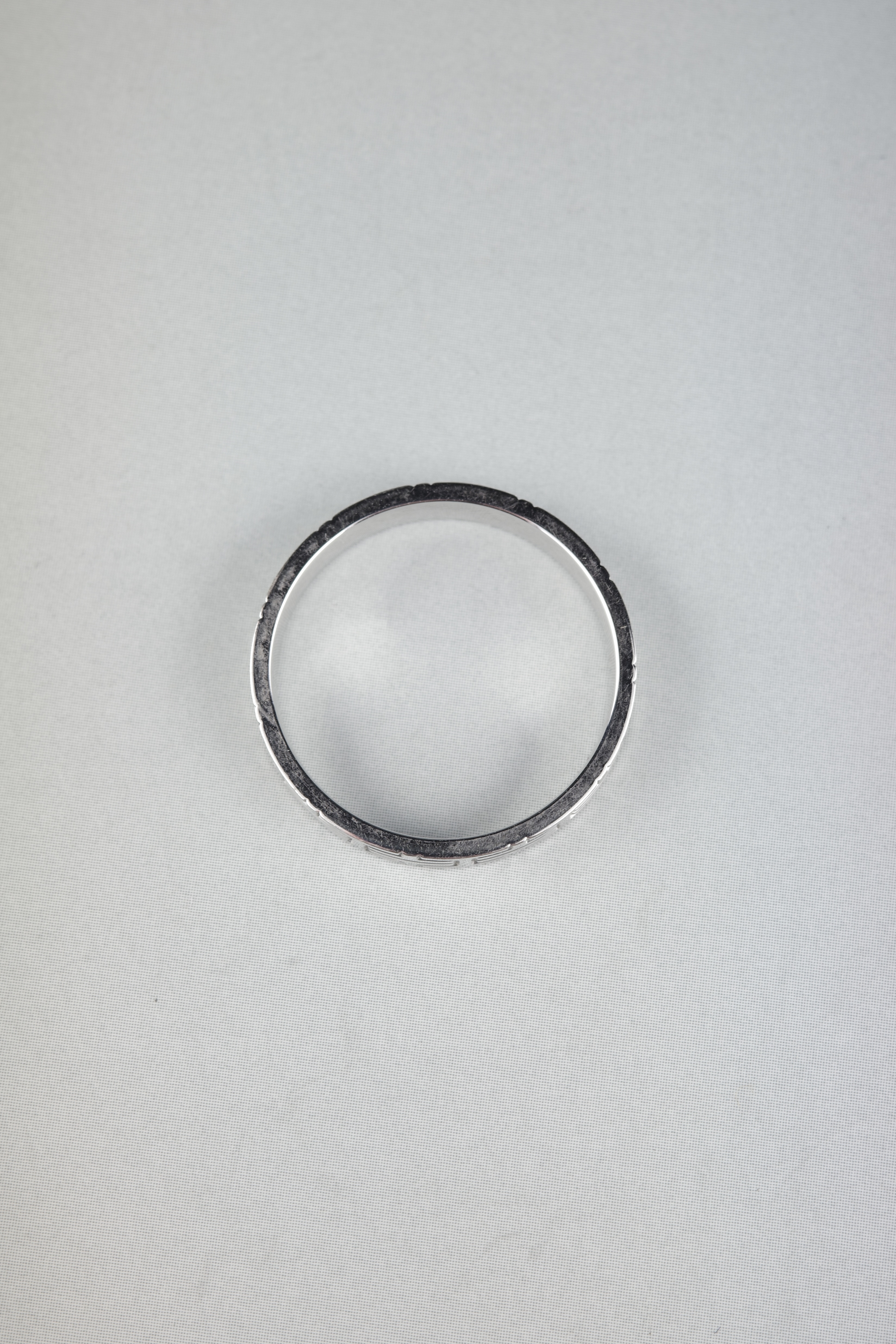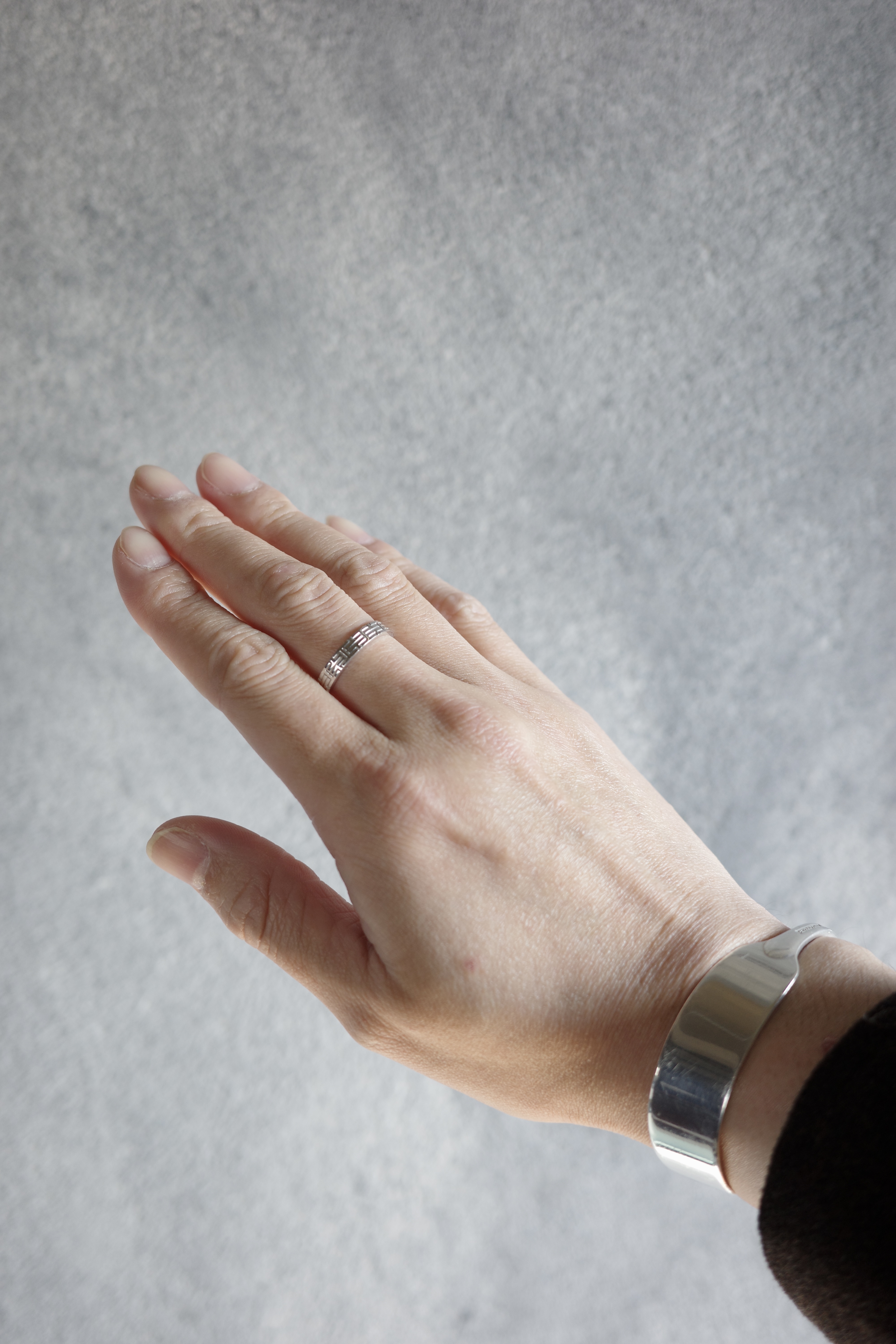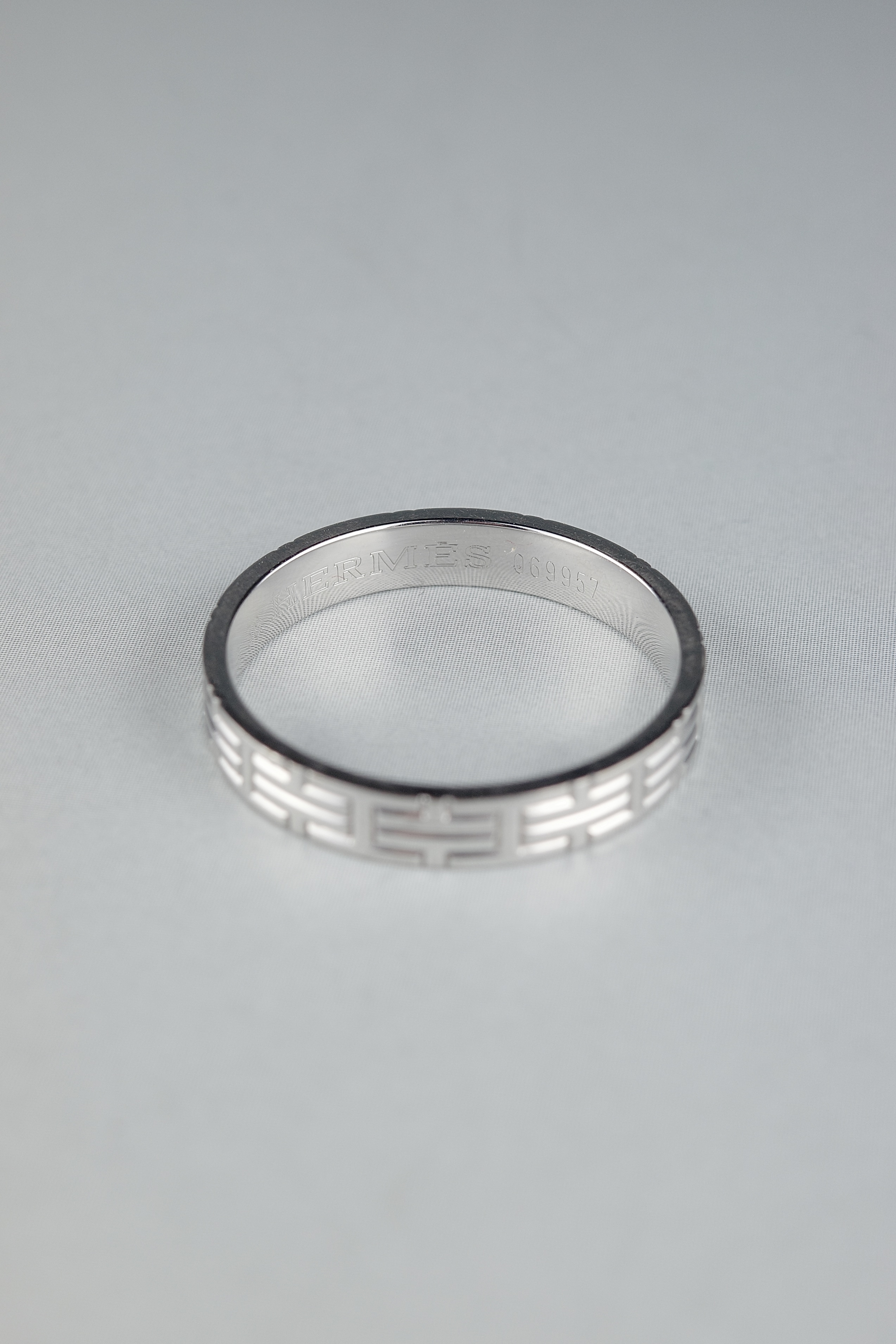 メゾンを象徴するモチーフのひとつ「キリム」を、上質なホワイトゴールドで仕立てたリング。直線的に連なる幾何学パターンは、建築的でありながらどこか柔らかさも感じさせ、エルメスらしい品格とモダンさを併せ持つデザイン。控えめなボリューム感と洗練された光沢により、主張しすぎることなく着用でき、単体使いはもちろん他のリングとのレイヤードにも自然に馴染む汎用性の高いアイテムです。