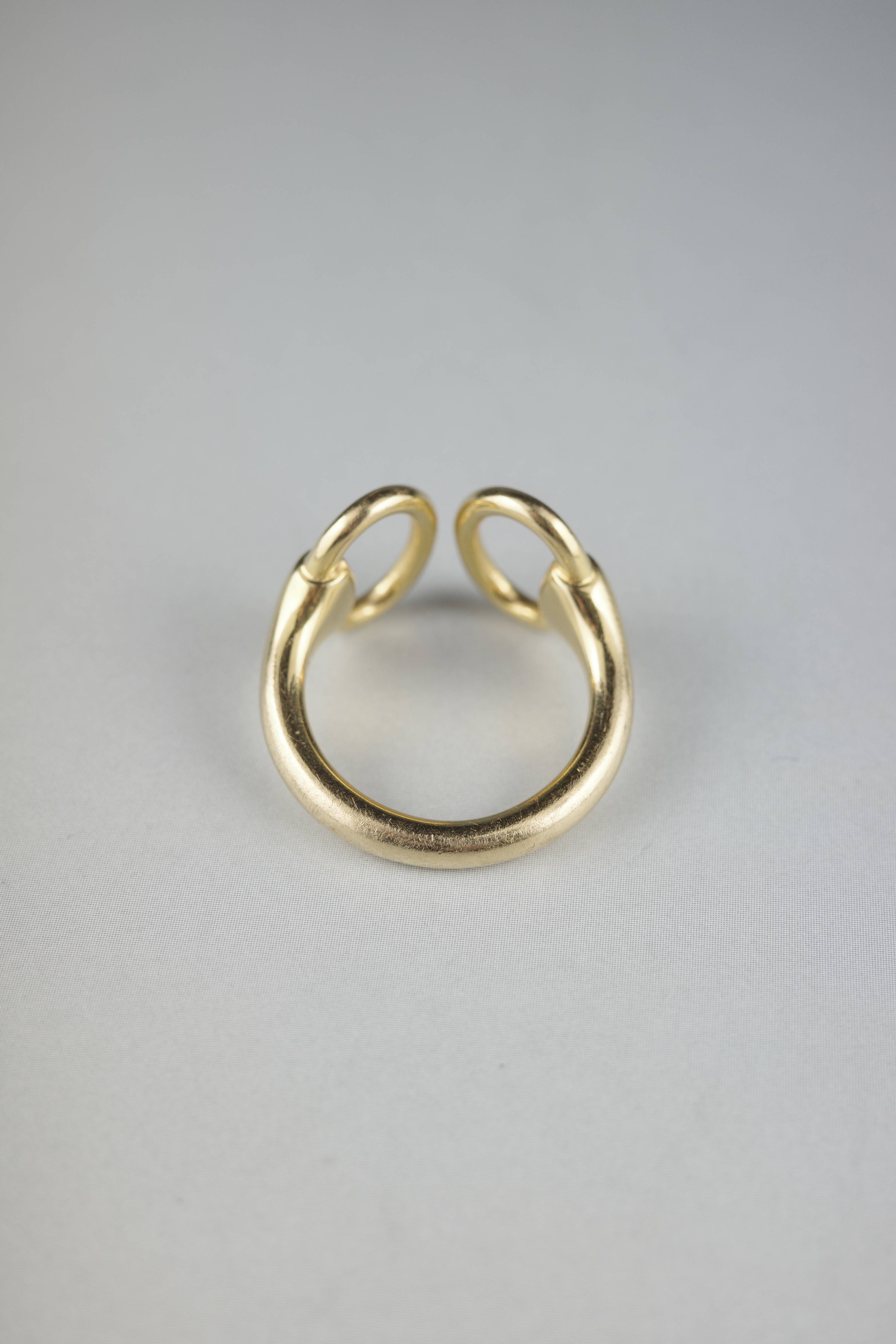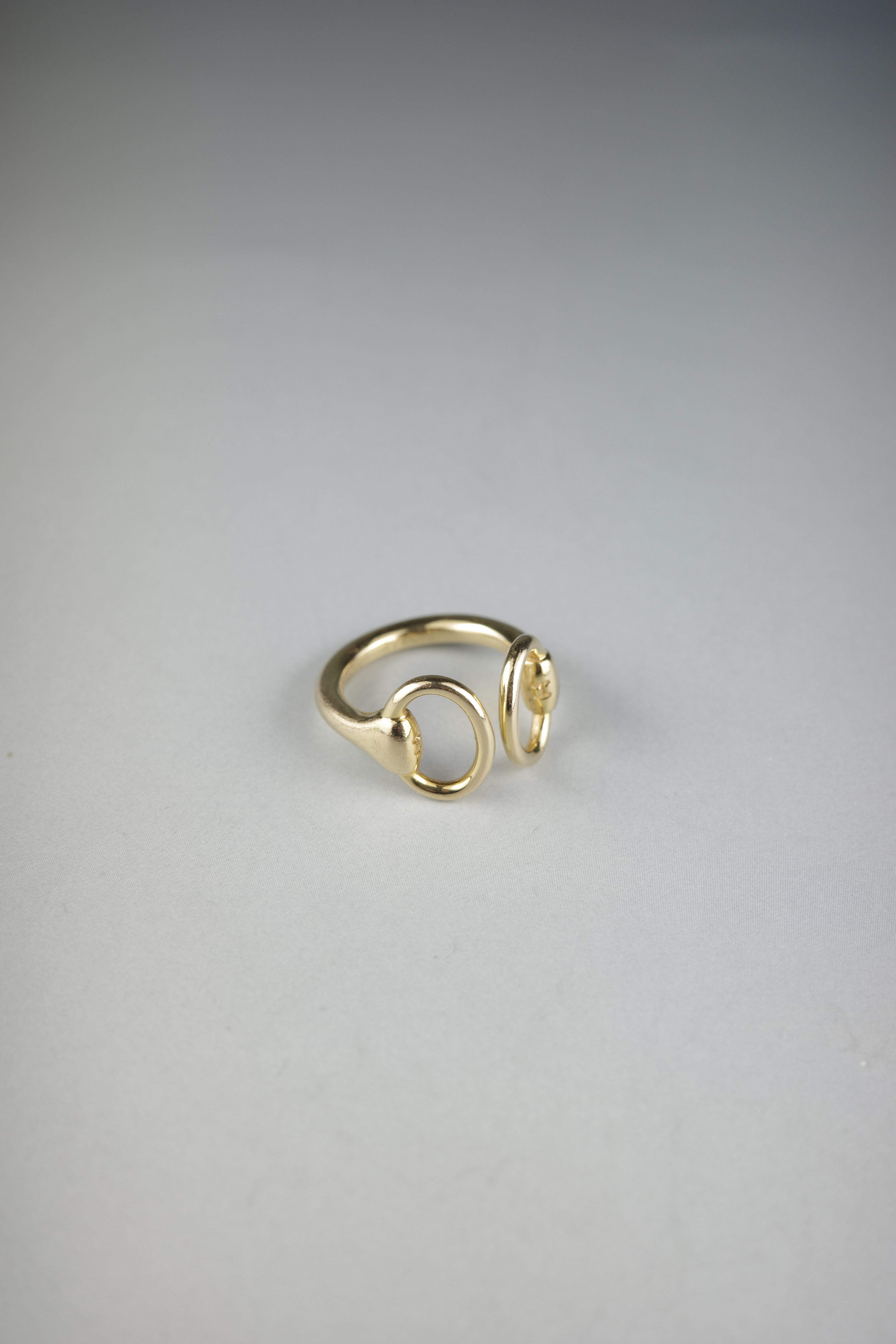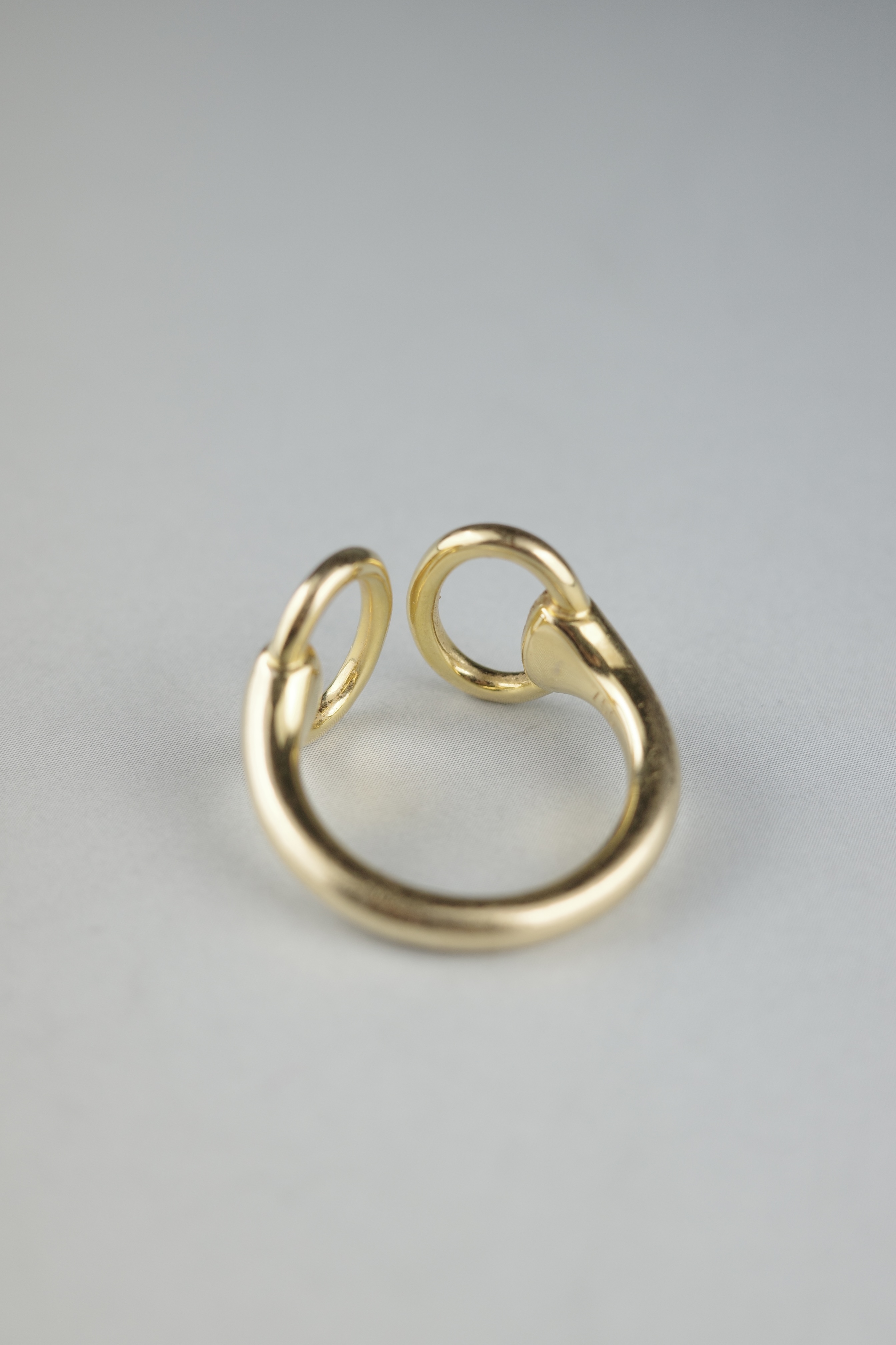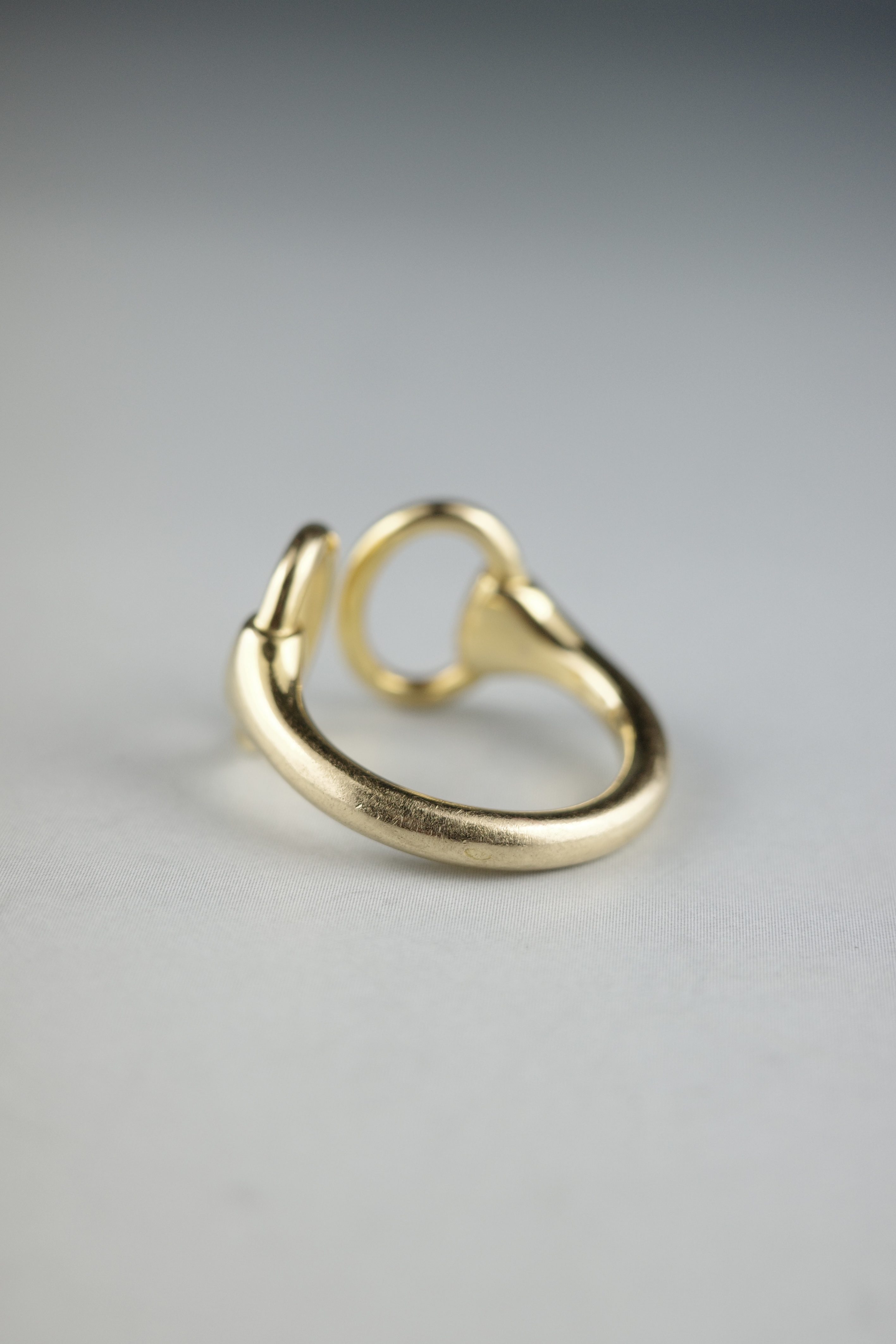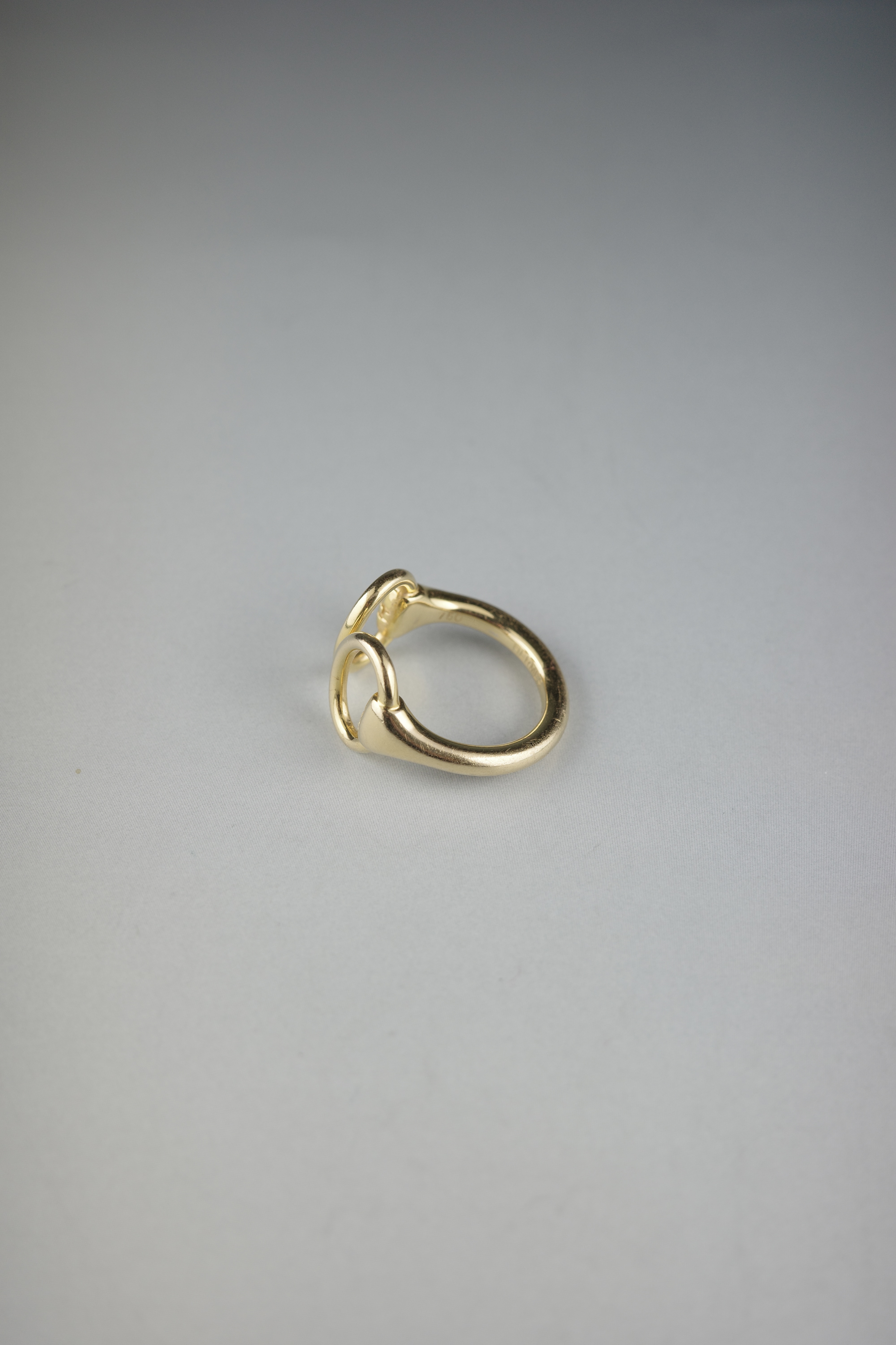 18金で作られたヴィンテージエルメスの「ナウシカ」。海をイメージした波のようなフォルムと、馬具の造形を掛け合わせた上品なデザインが人気のリング。イエローゴールドのナウシカリングは、シルバーとは一線を画す奥行きのある輝きと重厚感を纏い、指元に確かな存在感をもたらします。流通数が極めて少なく、現在ではコンディションの良い個体に出会うこと自体が難しい、希少価値の高いアイテムです。