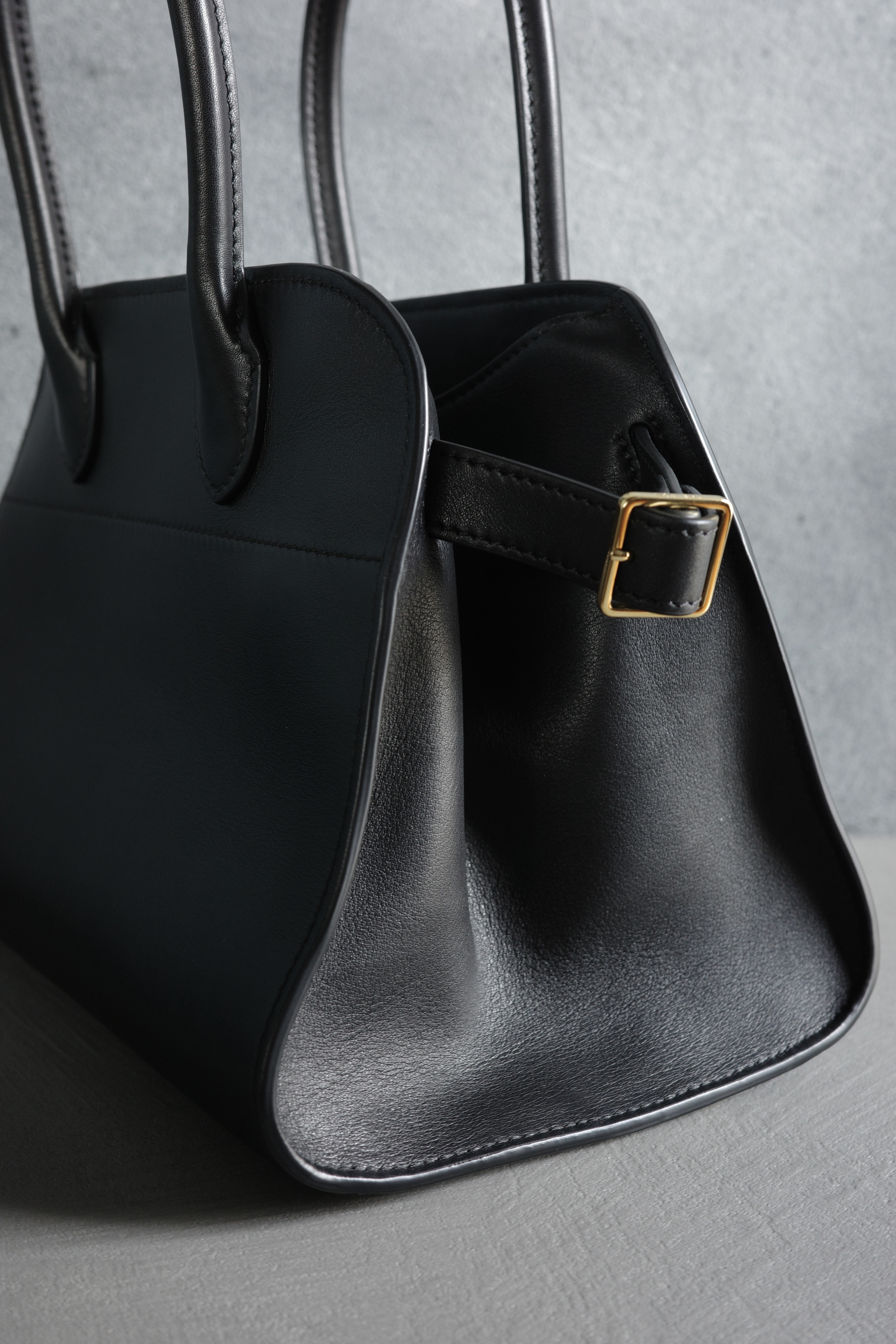 THE ROWを象徴するアイコンバッグ「Margaux(マルゴー)」の10サイズ。上質なサドルレザーを使用し、しっとりとした質感と自然な艶が、ミニマルなデザインをより一層引き立てます。使い込むほどに風合いが増し、経年変化を楽しめるのもサドルレザーならではの魅力。取り外し可能なショルダーストラップが付属し、ハンドバッグとしてはもちろん、ショルダーバッグとしても使用可能。シーンやスタイリングに合わせて持ち方を変えられる実用性も兼ね備えています。控えめでありながら確かな存在感を放つ、THE ROWらしいクワイエットラグジュアリーを体現した逸品。
