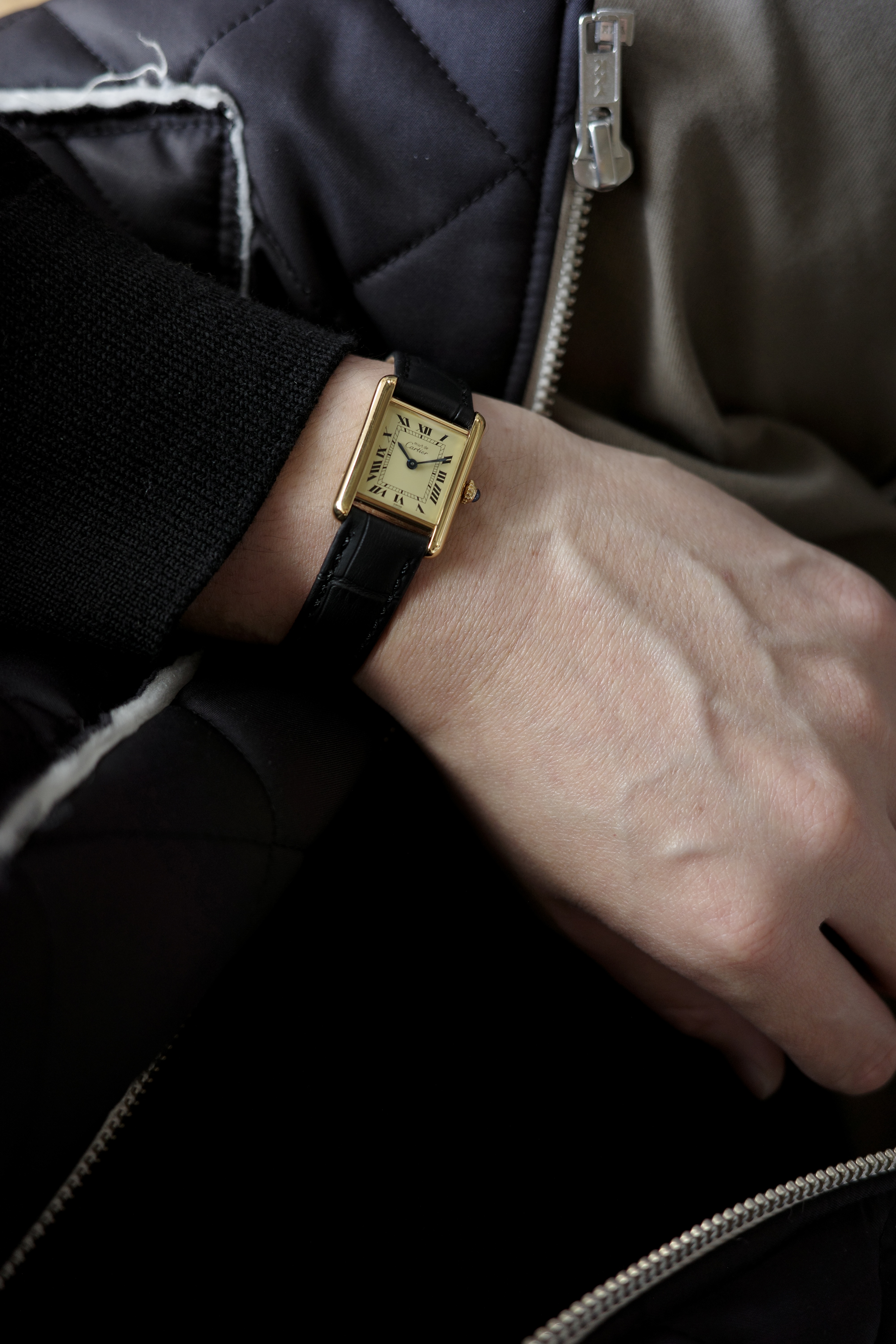 1970年代に誕生し、メゾンの歴史を語るうえで欠かせない名作、Cartier Must Tank(カルティエ マストタンク)のSMサイズ。ルイ・カルティエが生み出したタンクの端正なフォルムを受け継ぎながら、より身近な存在として登場した“Must de Cartier”ライン。アイコニックなレクタンギュラーケースやローマンインデックス、カボションリューズ等、カルティエらしい意匠が凝縮されています。華奢で上品なSMサイズは、腕元にさりげない品格を添える絶妙なバランス。ブラックレザーベルトとのコントラストも美しく、クラシックにもモードにも馴染む一本です。