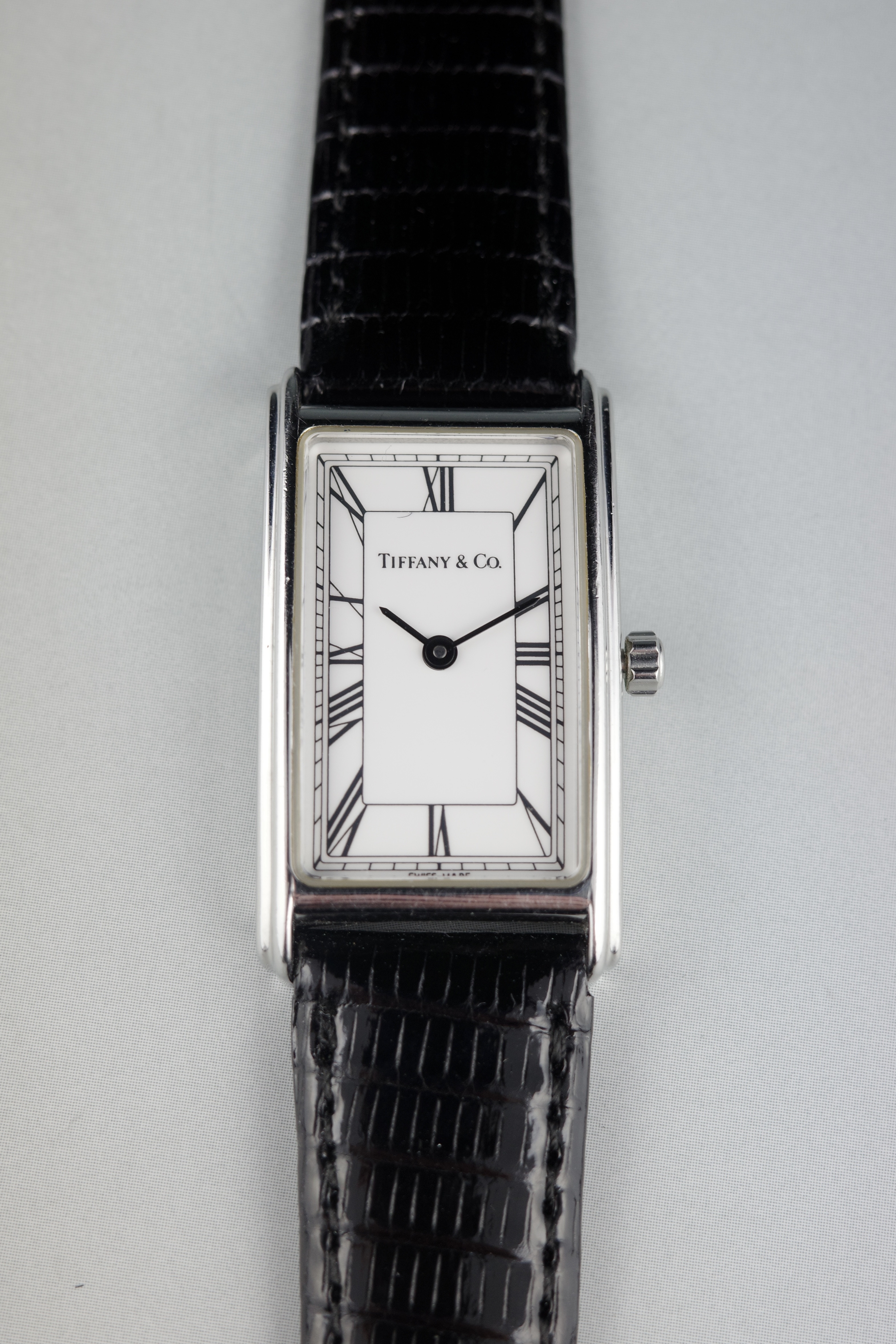 端正なレクタンギュラーケースにクラシカルなローマンインデックスが映える、ティファニーのヴィンテージウォッチ。シンプルながらユニセックスで使用できる絶妙なケースサイズ、緩やかなカーブを描くケースフォルム等、ティファニーならでは洗練された気品を感じるデザインが魅力。流行り廃りなく長く愛用できるアイテムです。