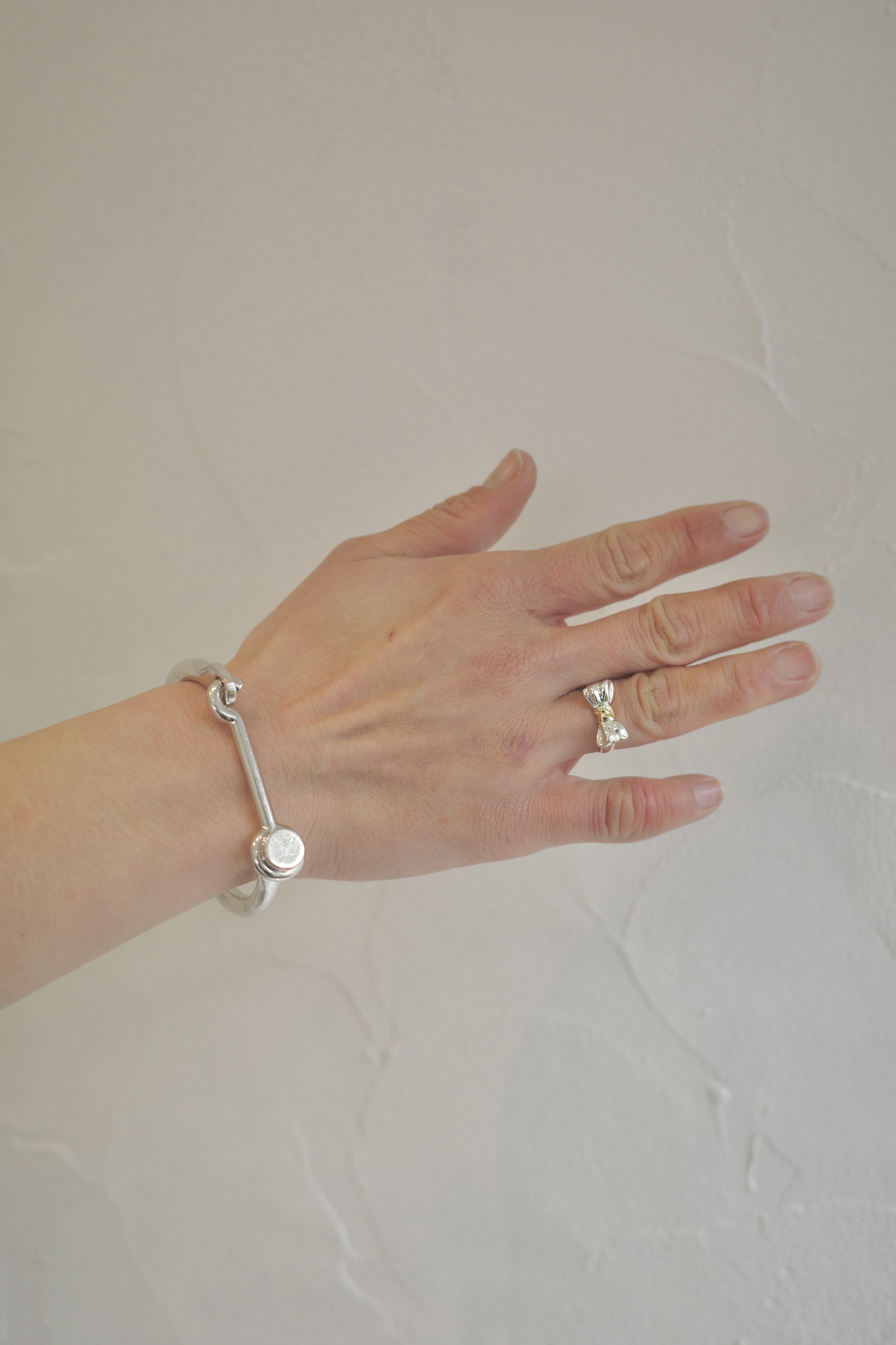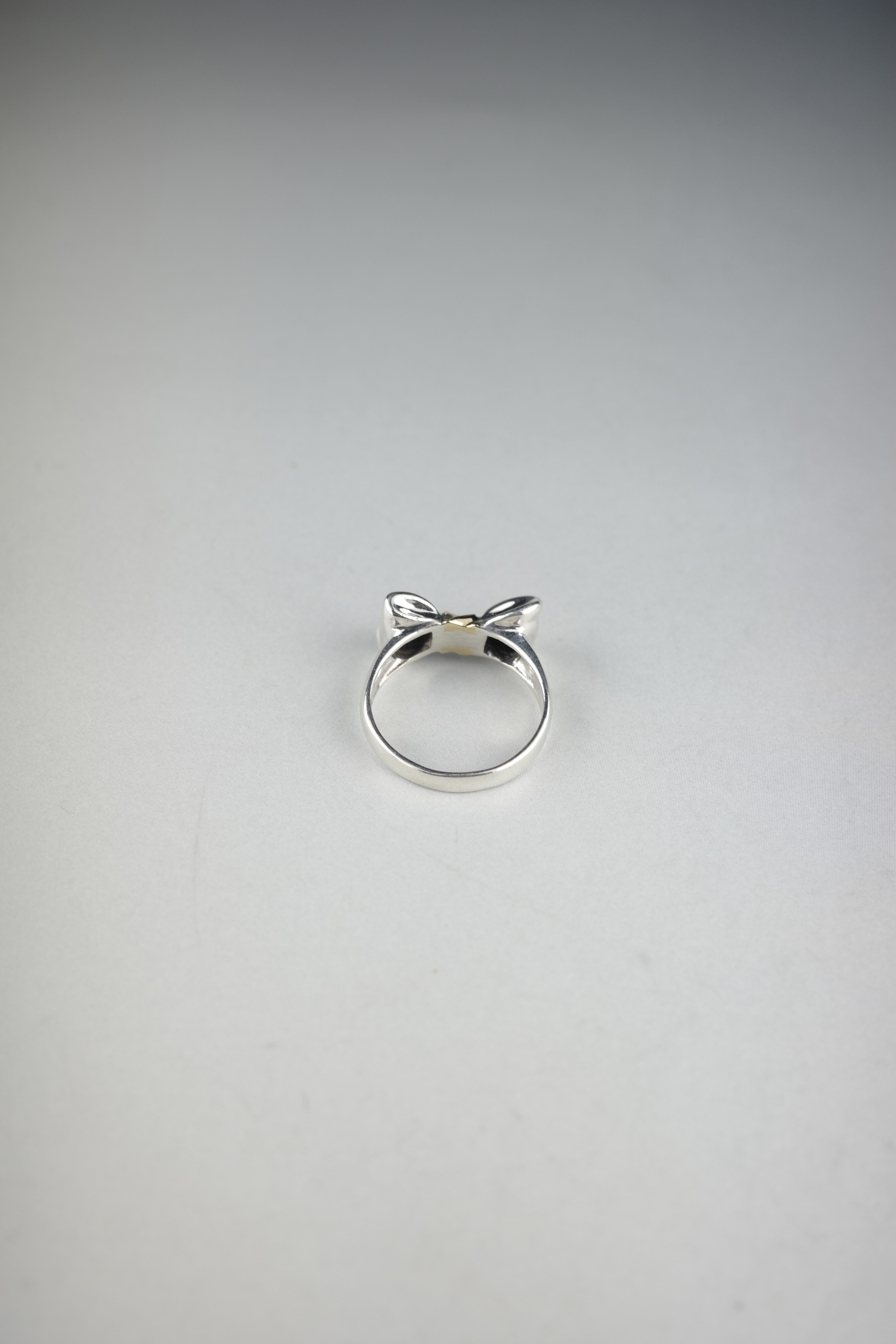 立体的に結ばれたリボンモチーフが印象的な、ヴィンテージティファニーのコンビネーションリング。滑らかなシルバー925のボディに、中央にはK18ゴールド。異素材のコントラストが柔らかさと華やかさを絶妙なバランスで引き立てます。甘くなりがちなリボンモチーフですが、ティファニーらしいミニマルな造形と上品なボリューム感により、洗練された印象に。可愛らしさの中に大人っぽさがあるアイテム。
