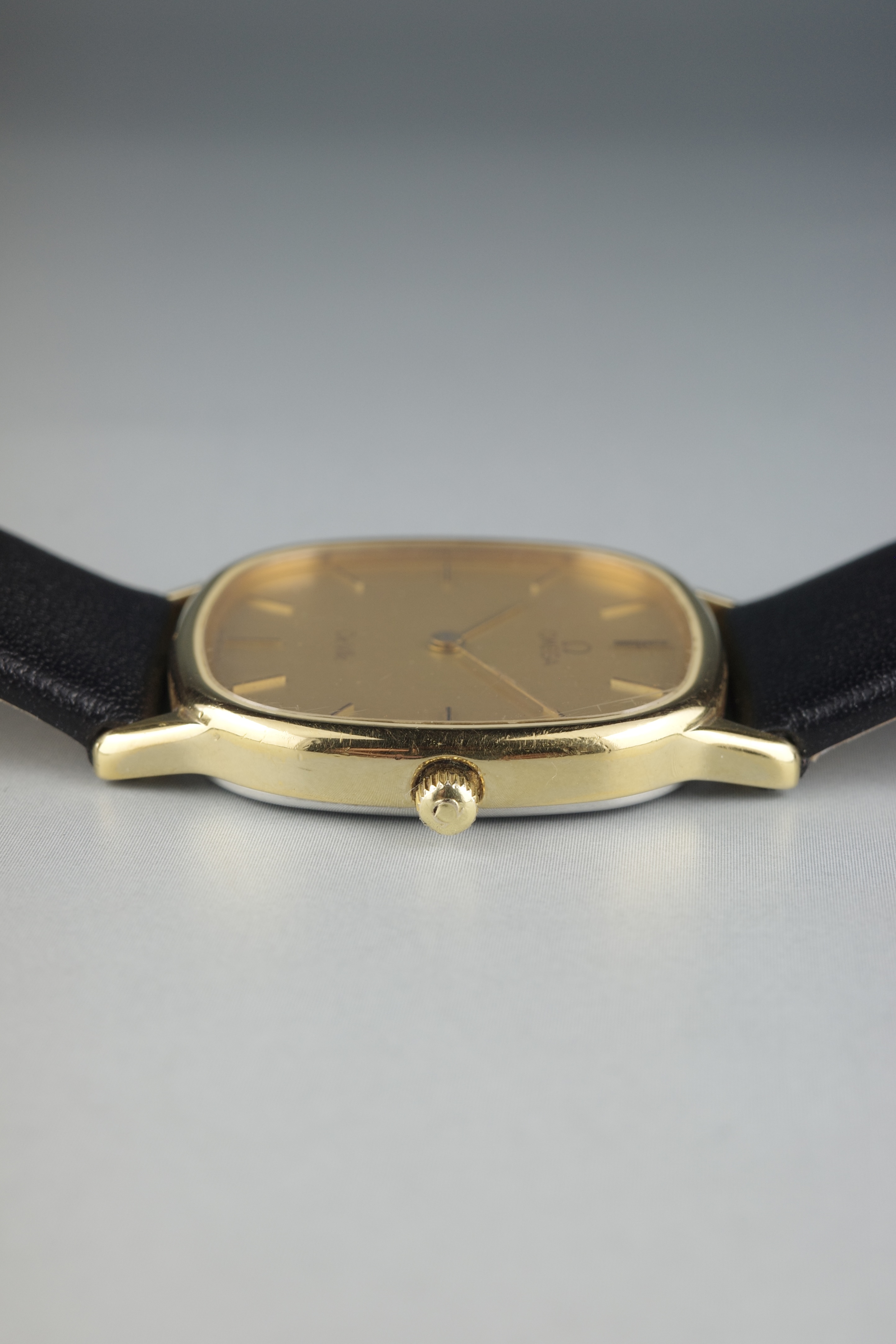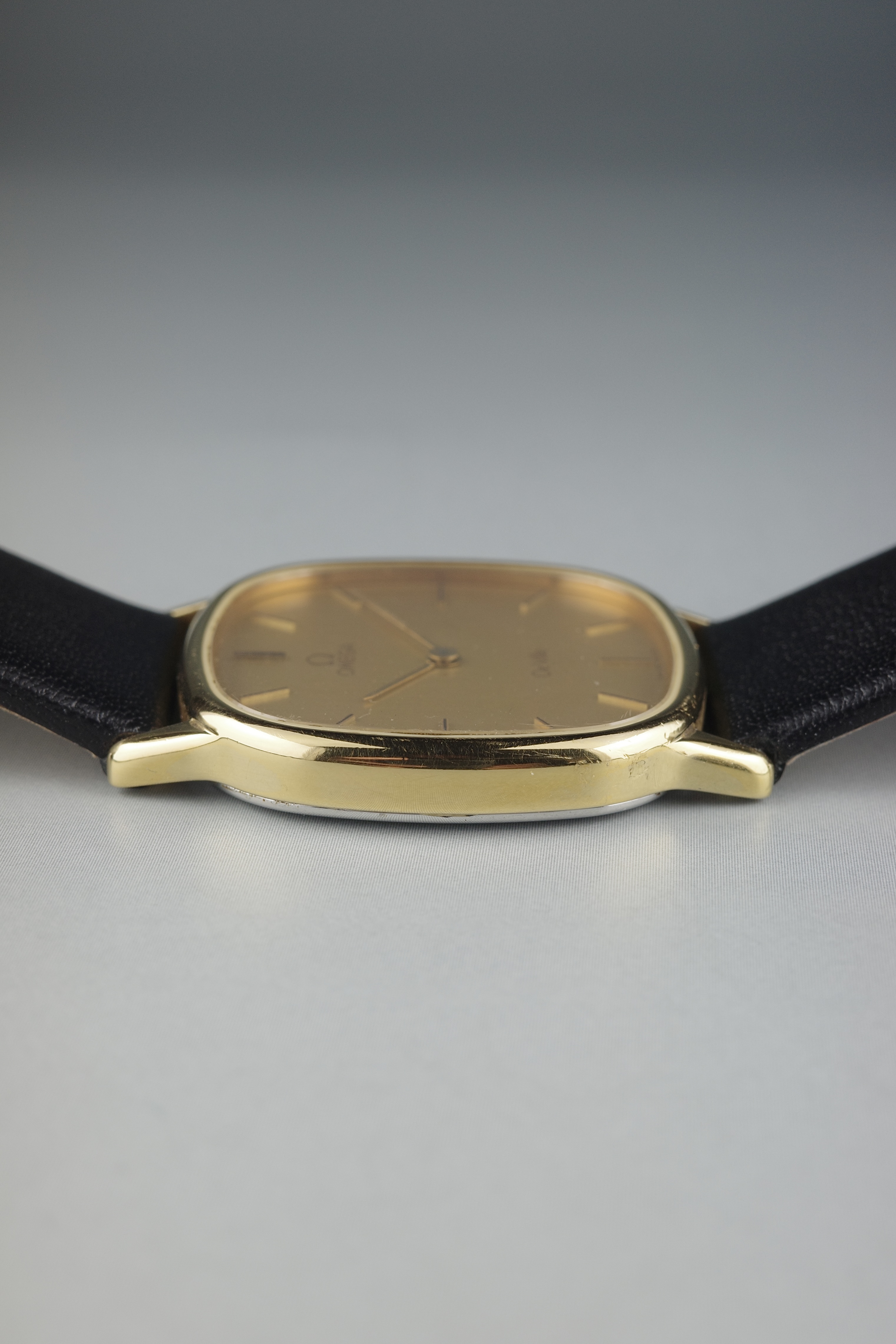 スイスの名門時計ブランド、OMEGAを代表するドレスライン「De Ville(デ・ヴィル)」のヴィンテージウォッチ。緩やかにラウンドしたケースに、落ち着いたゴールドカラーのダイヤルを合わせたクラシカルな一本。無駄を削ぎ落としたバーインデックスと繊細な2針デザインが、上品で洗練された印象。De Villeは、1960〜70年代頃のドレスウォッチとして高い人気を誇るシリーズで、シンプルで飽きのこないデザインは現在でも多くのヴィンテージウォッチファンに支持されているアイテムです。