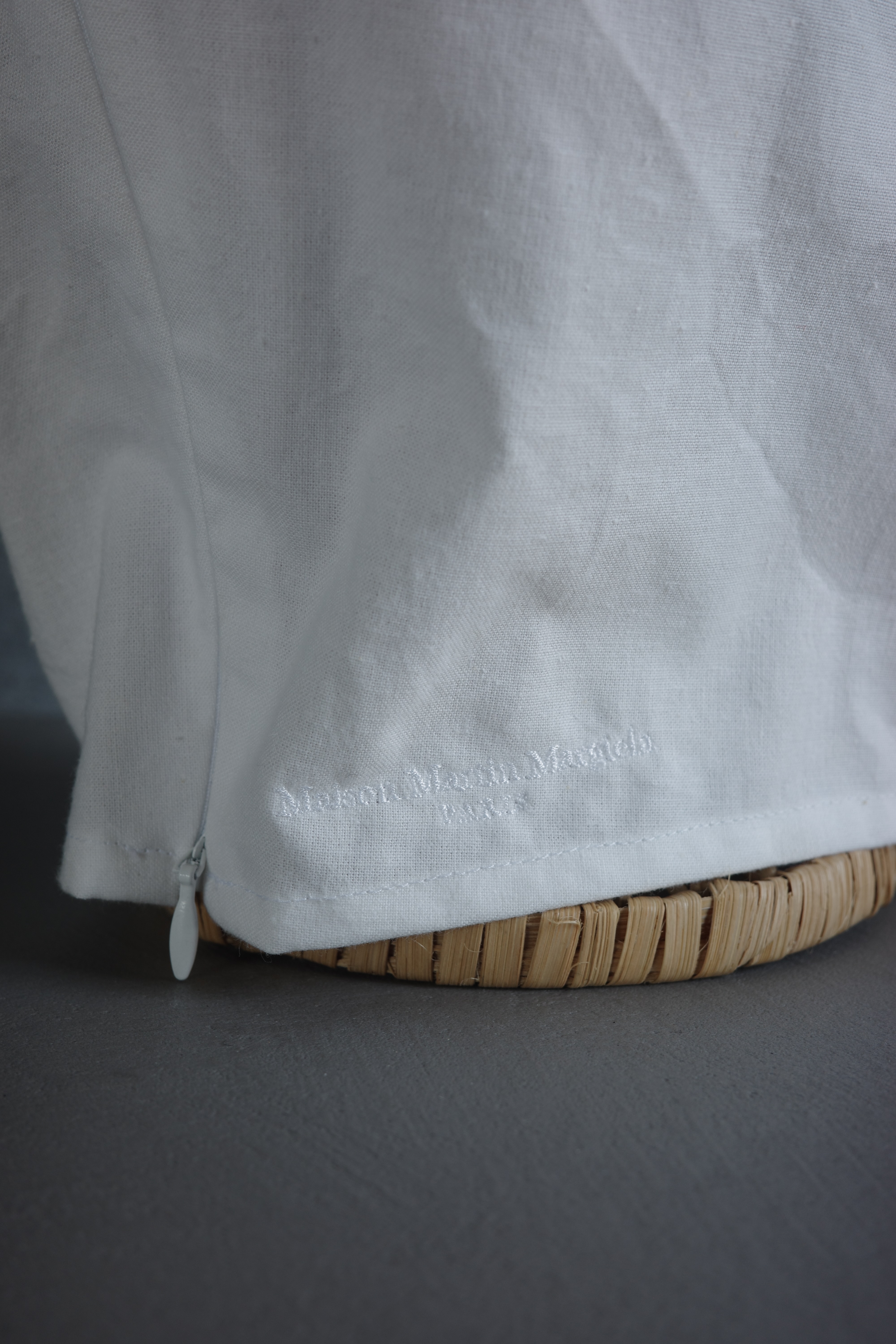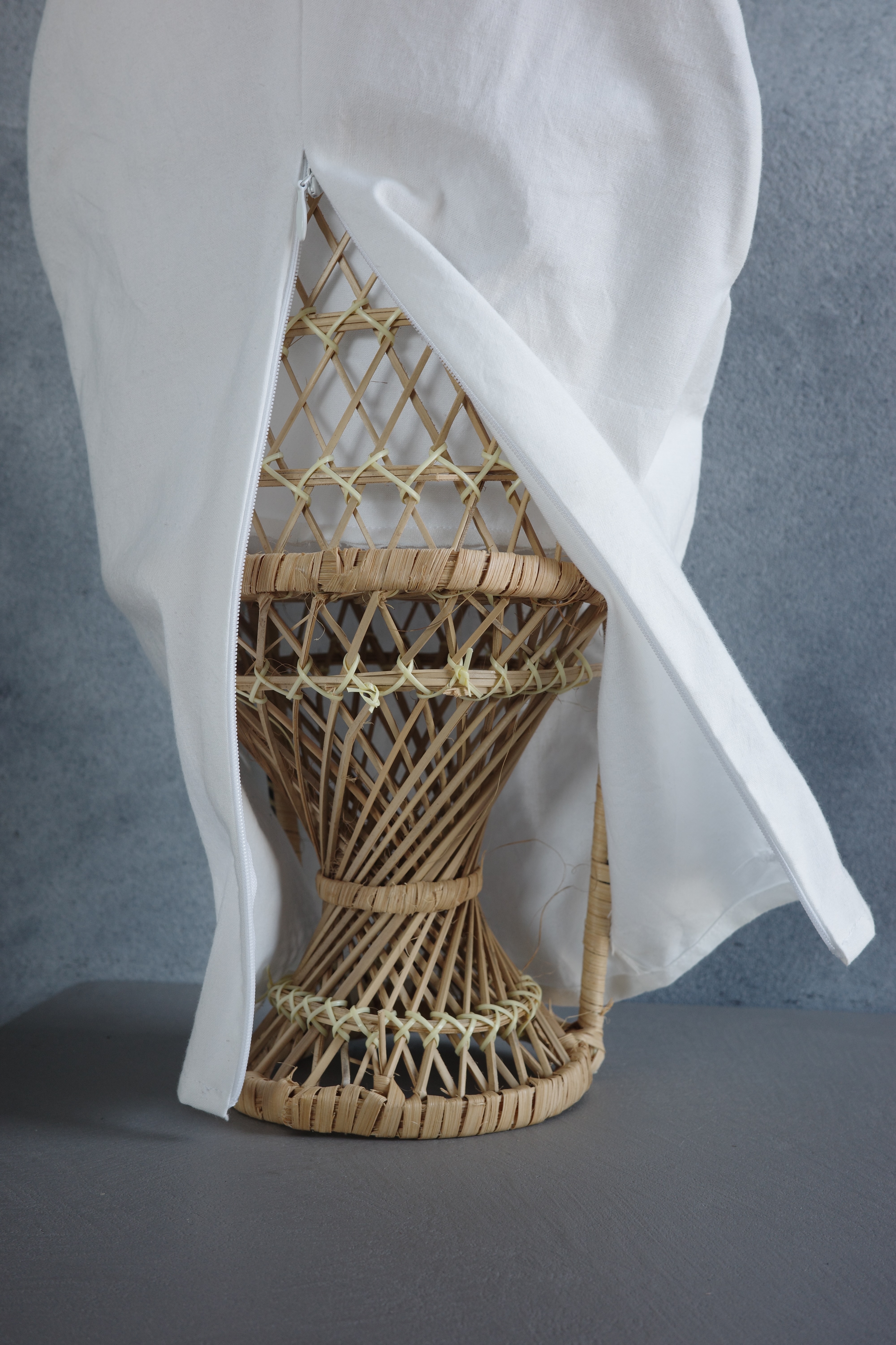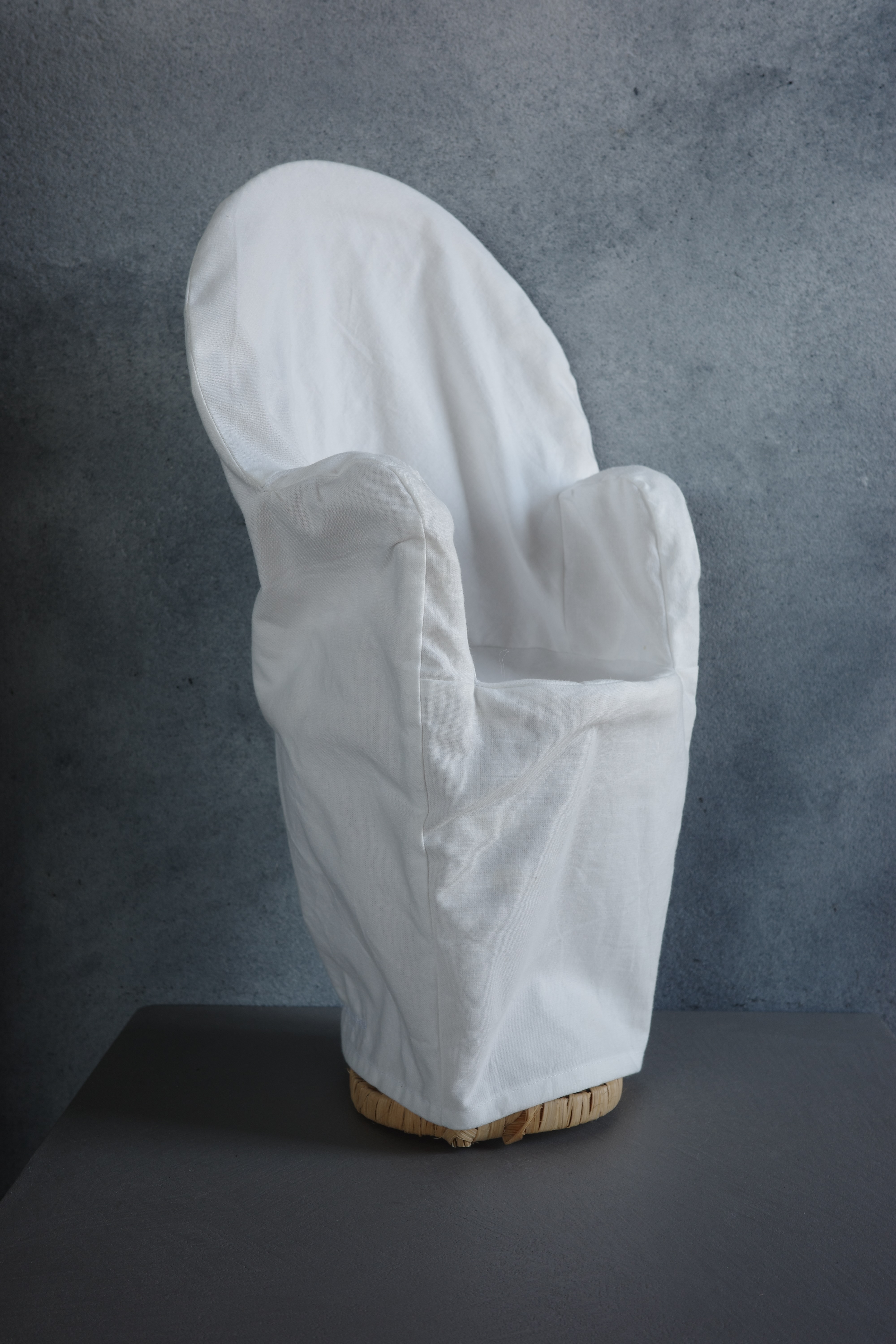 メゾンの思想を体現するMaison Martin Margielaの13ライン「オブジェと出版物のコレクション」より展開されたミニチュアチェア。本作は、エマニュエルチェアの有機的なフォルムをそのままに、全体をホワイトファブリックで覆ったアイコニックなデザイン。本来ラタン素材が持つ温もりや装飾性をあえて隠すことで、用途や素材の文脈を曖昧にし、純粋な“形”として再構築しています。機能性から切り離されたその佇まいは、家具でありながらオブジェとしての存在感を放ち、空間に静かな違和感と美しさをもたらす一品。メゾンの哲学を凝縮した、アートピースのようなプロダクトです。