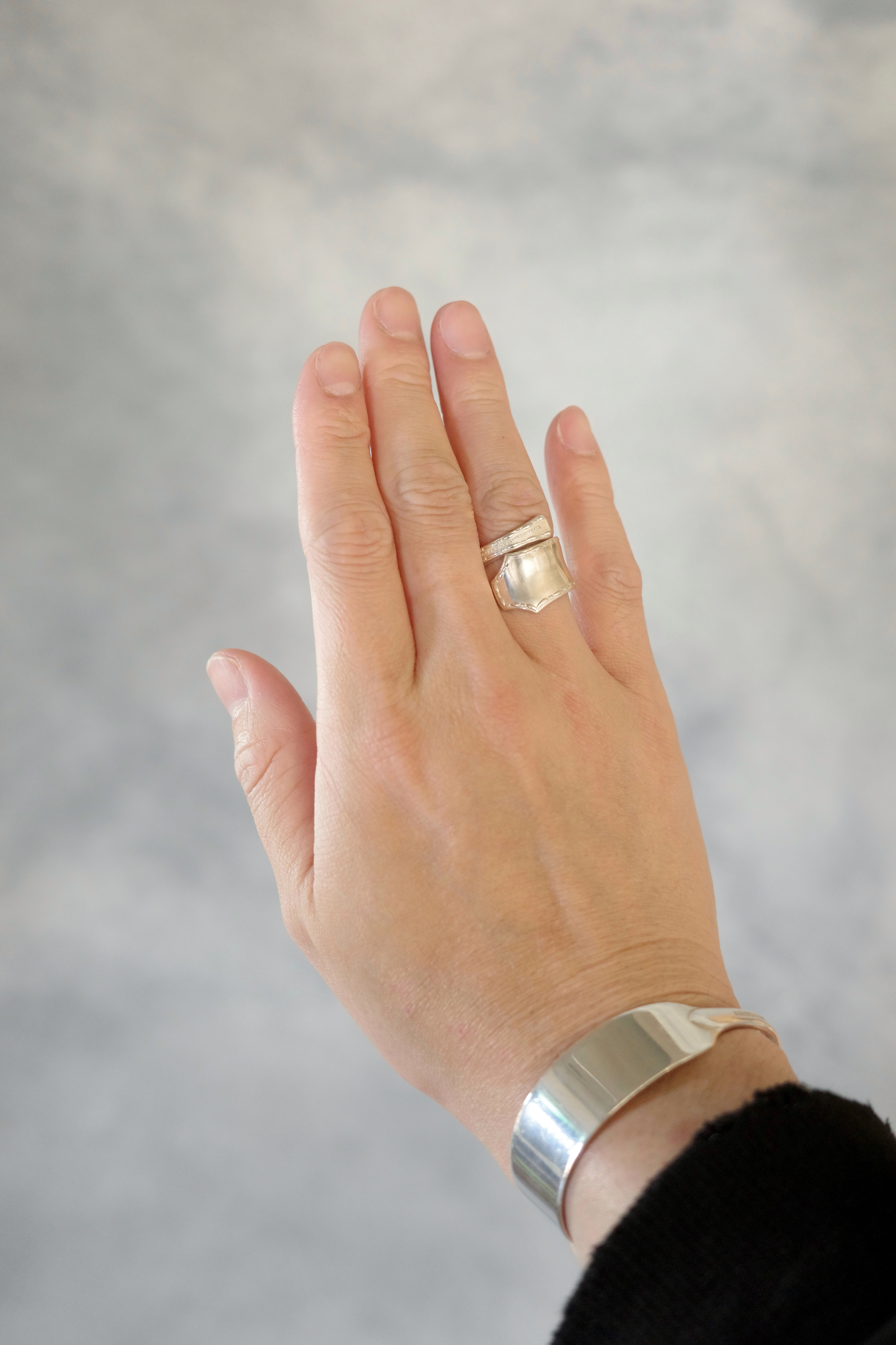 100年以上前に製造されたアンティークカトラリーを、職人の手作業によって現代のアートジュエリーへと昇華させた一点。当時の意匠や風合いを活かしながら再構築されており、量産品にはない独特の存在感が魅力です。それぞれ異なる背景を持つカトラリーから生まれているため、同じものがふたつと存在しない“一点物”としての価値を備えています。日常のスタイリングにさりげなく個性と奥行きを加えてくれる、唯一無二のアイテムです。