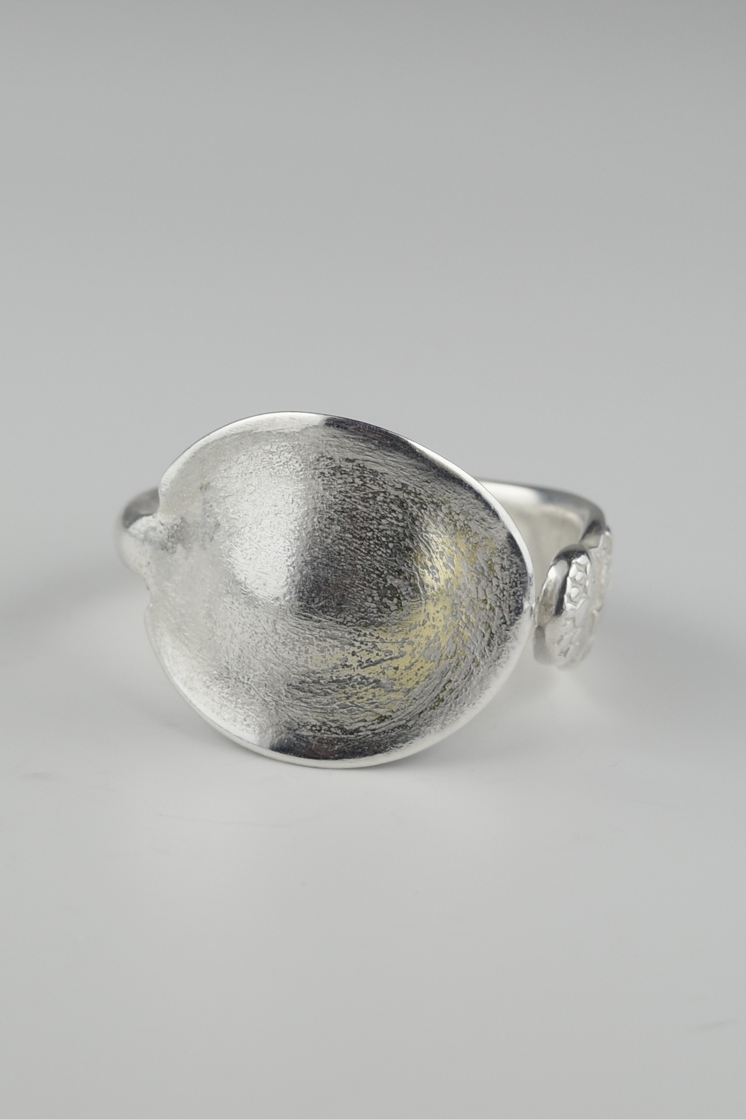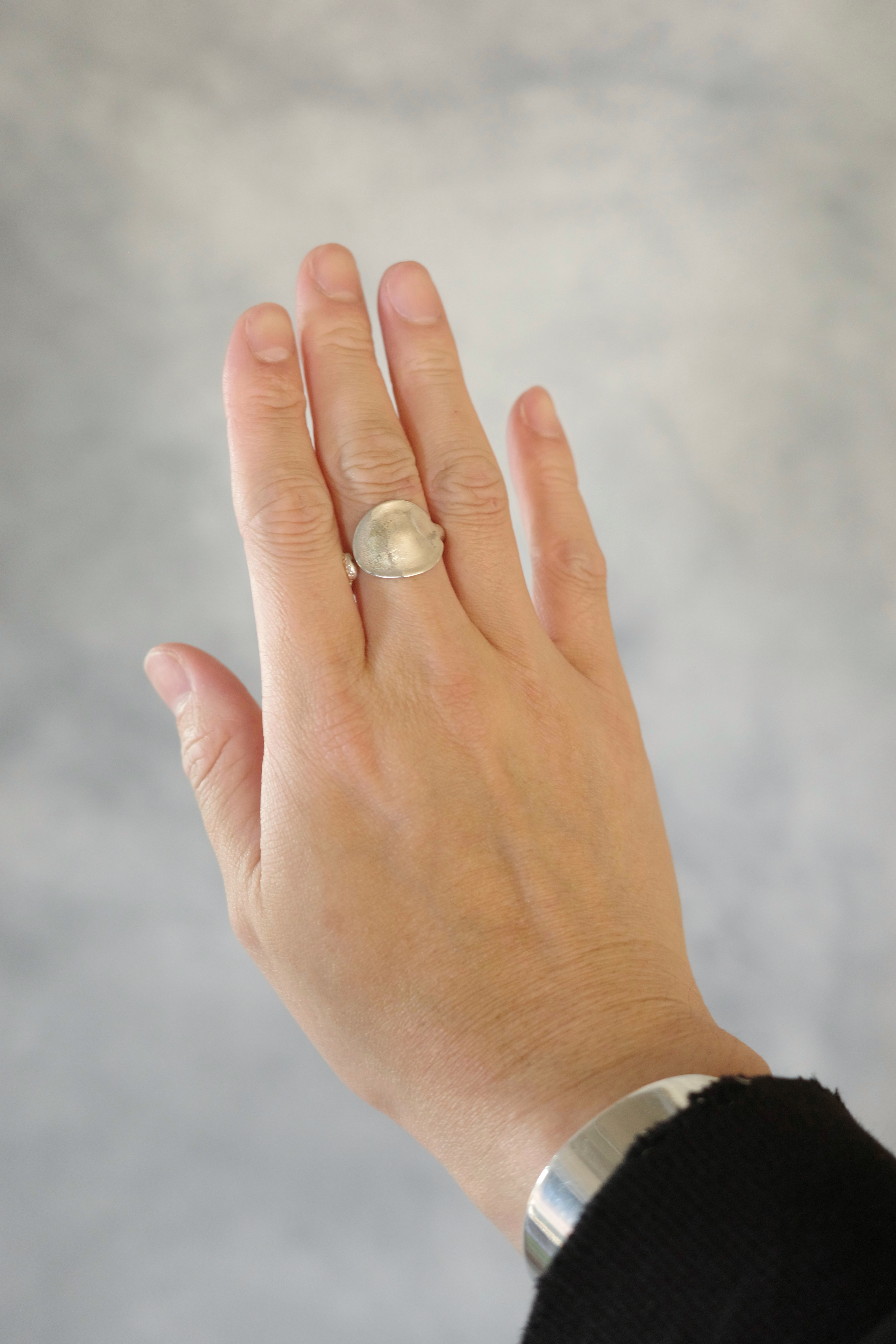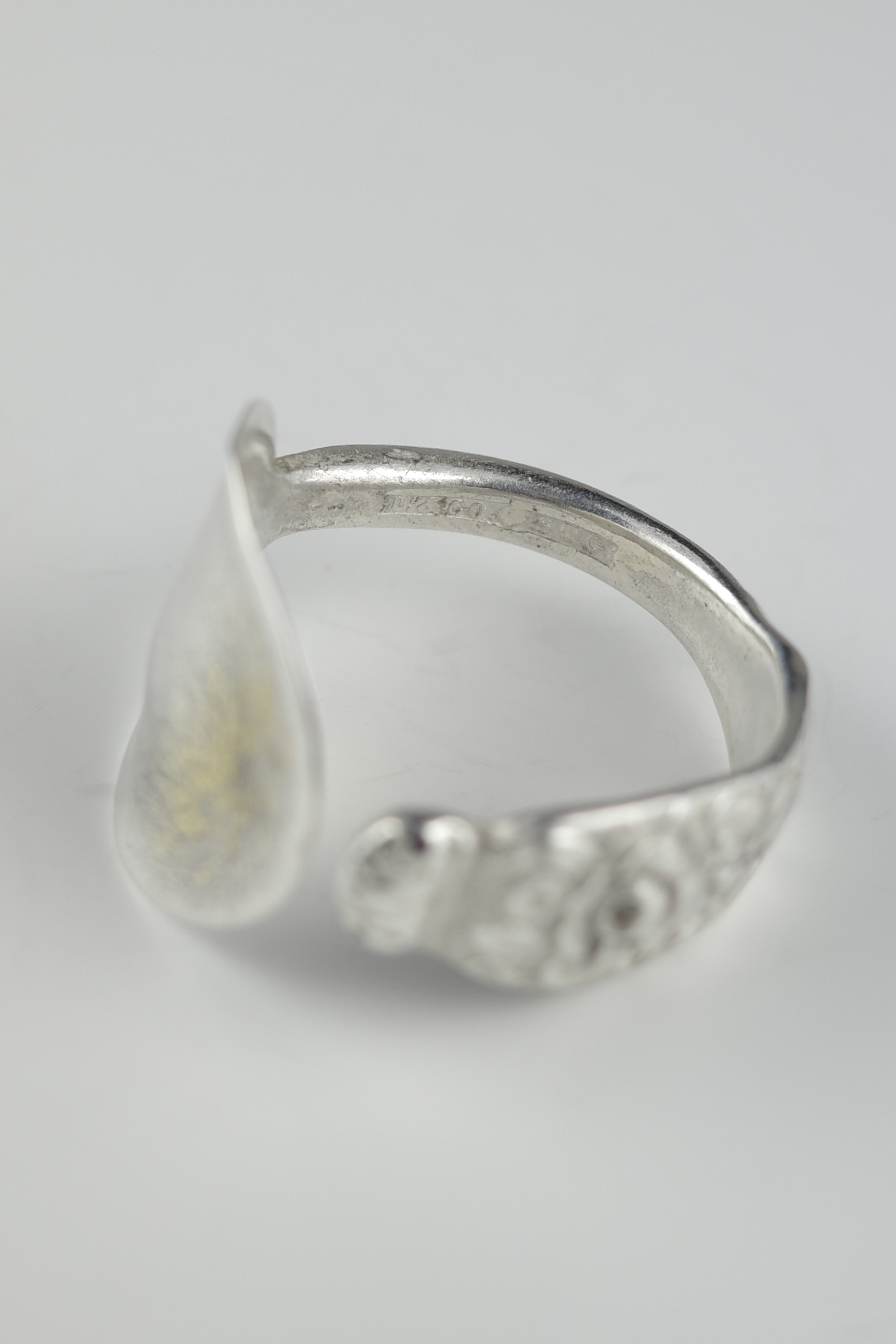 100年以上前に製造されたアンティークカトラリーを、職人の手作業によって現代のアートジュエリーへと昇華させた一点。当時の意匠や風合いを活かしながら再構築されており、量産品にはない独特の存在感が魅力です。それぞれ異なる背景を持つカトラリーから生まれているため、同じものがふたつと存在しない“一点物”としての価値を備えています。日常のスタイリングにさりげなく個性と奥行きを加えてくれる、唯一無二のアイテムです。