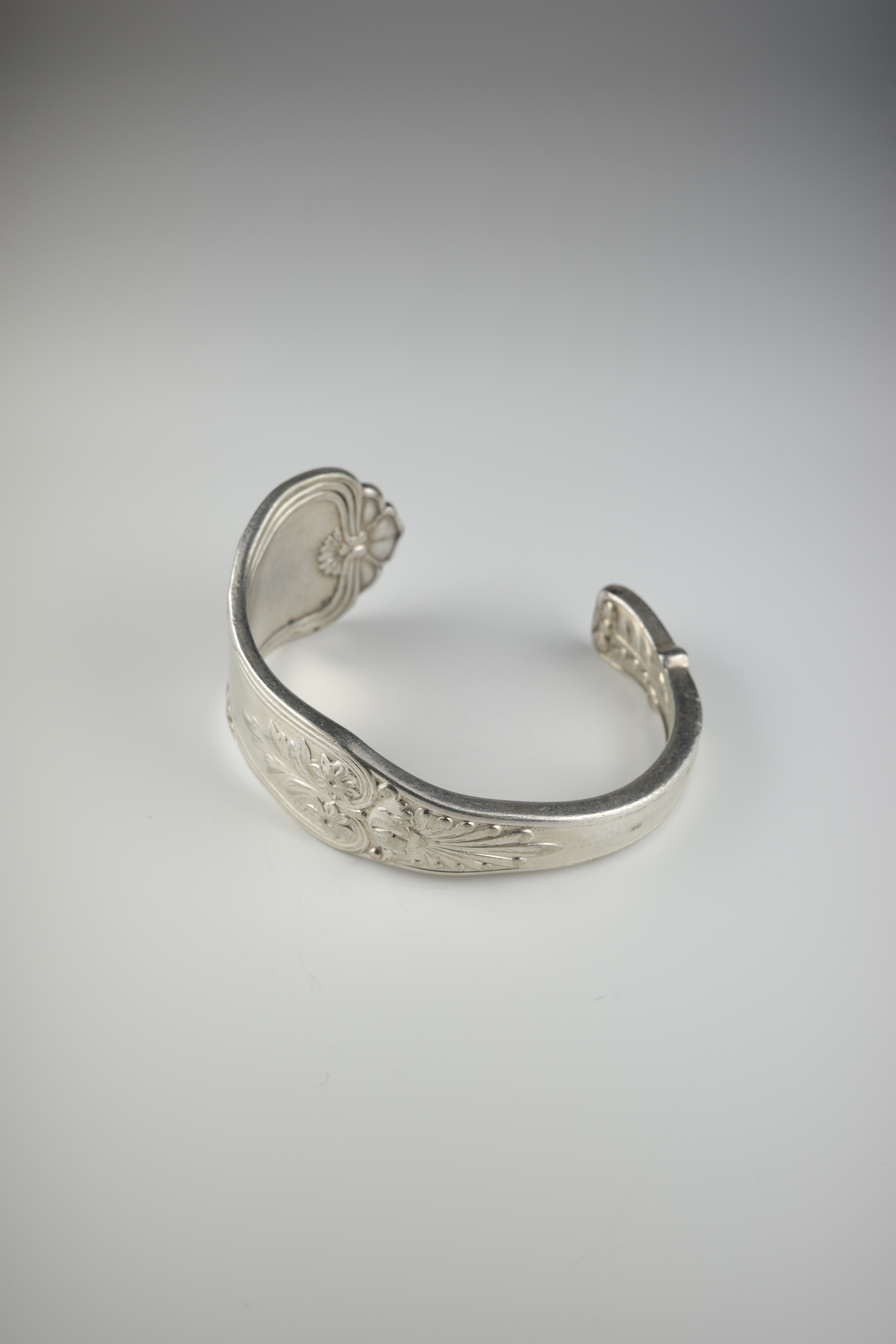 100年以上前に製造されたアンティークカトラリーを、職人の手作業によって現代のアートジュエリーへと昇華させた一点。当時の意匠や風合いを活かしながら再構築されており、量産品にはない独特の存在感が魅力です。それぞれ異なる背景を持つカトラリーから生まれているため、同じものがふたつと存在しない“一点物”としての価値を備えています。日常のスタイリングにさりげなく個性と奥行きを加えてくれる、唯一無二のアイテムです。
