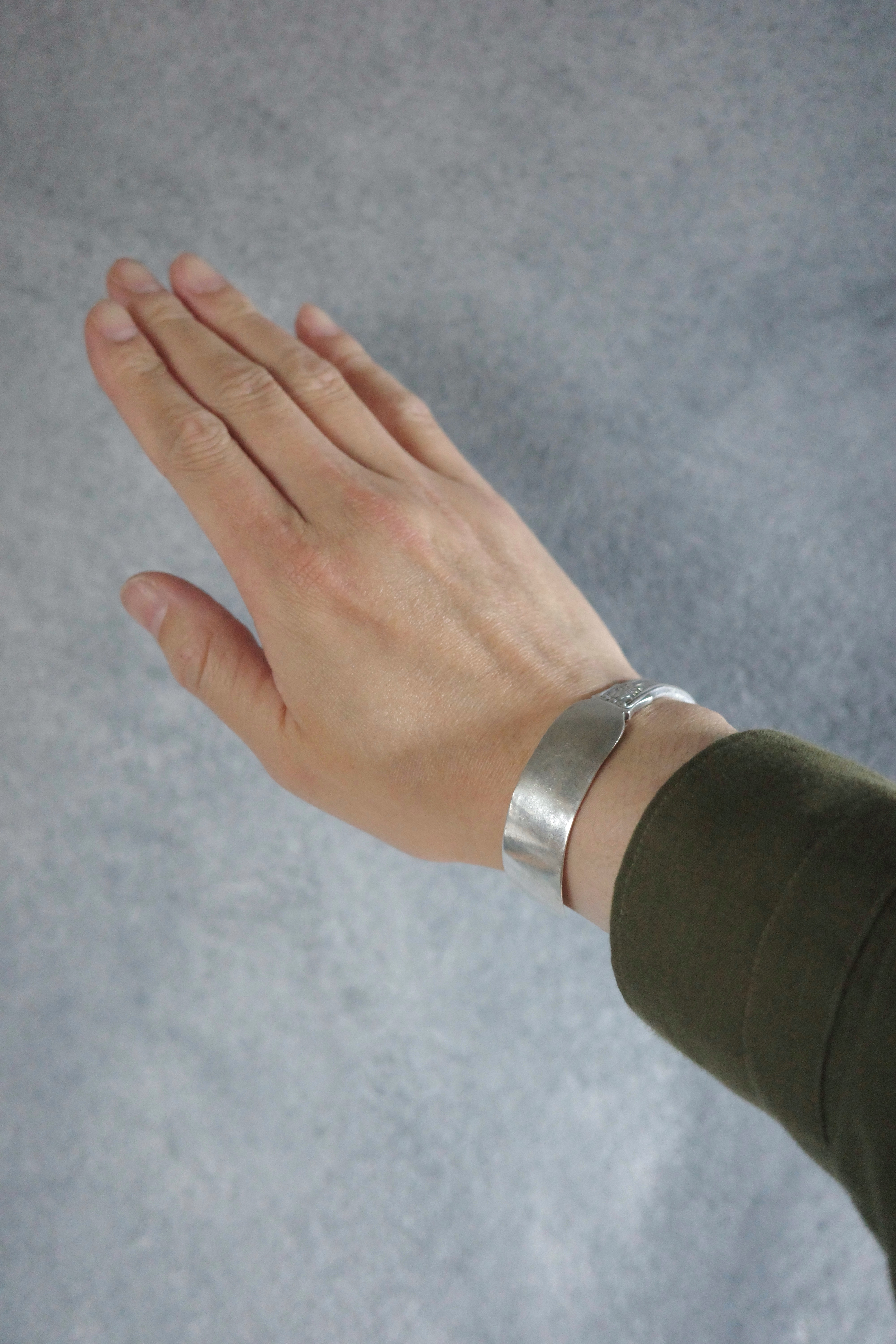 100年以上前に製造されたアンティークカトラリーを、職人の手作業によって現代のアートジュエリーへと昇華させた一点。当時の意匠や風合いを活かしながら再構築されており、量産品にはない独特の存在感が魅力です。それぞれ異なる背景を持つカトラリーから生まれているため、同じものがふたつと存在しない“一点物”としての価値を備えています。日常のスタイリングにさりげなく個性と奥行きを加えてくれる、唯一無二のアイテムです。