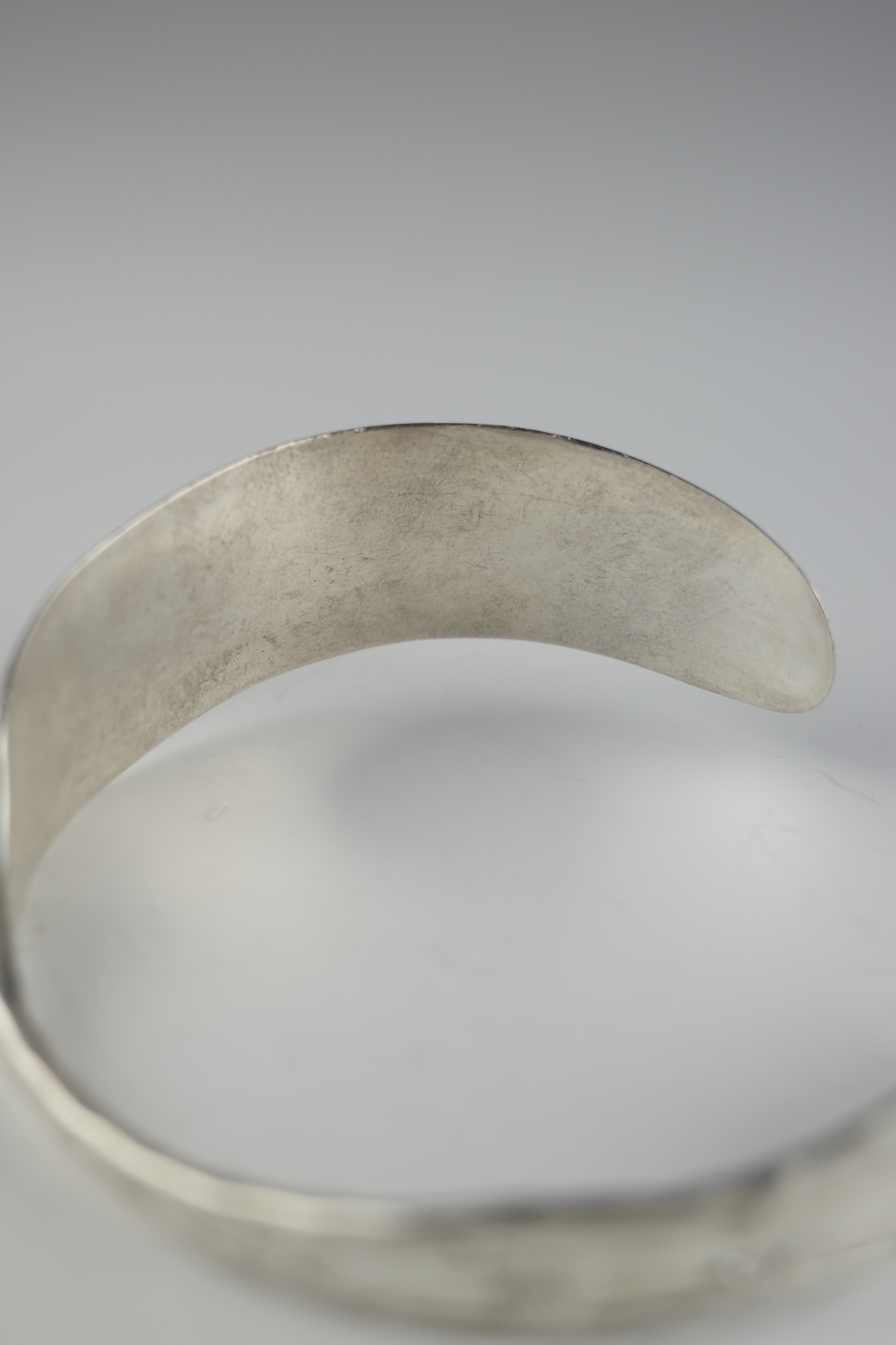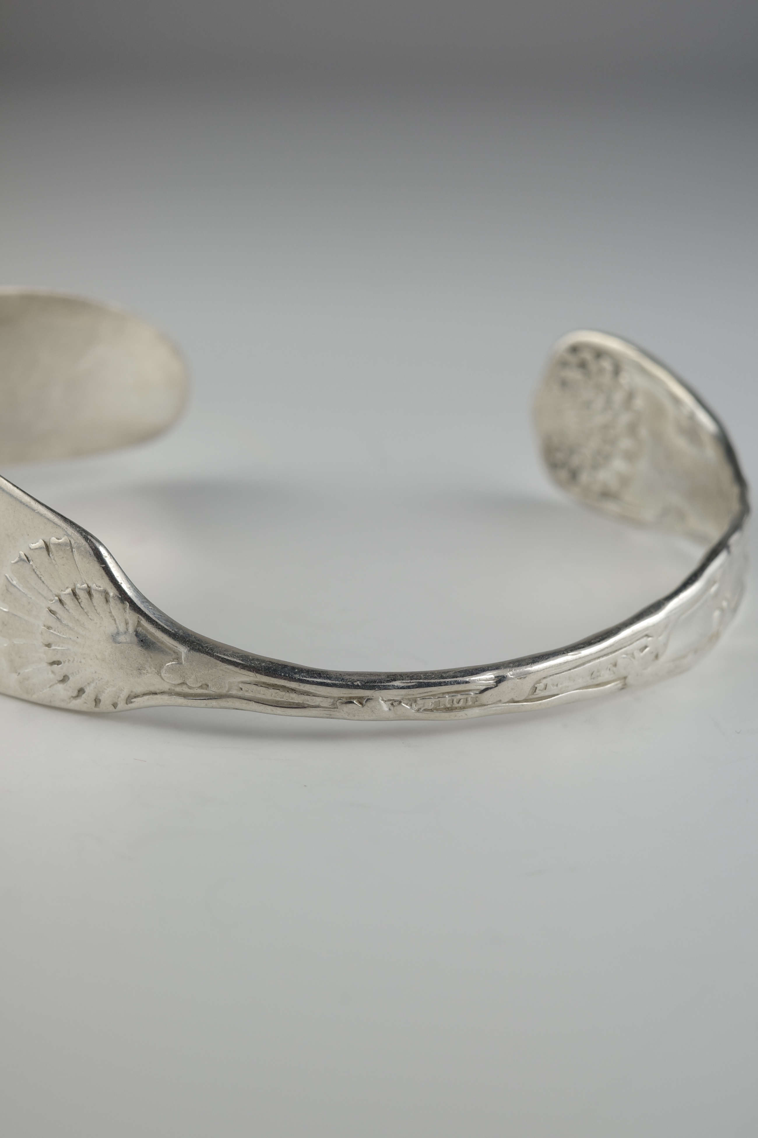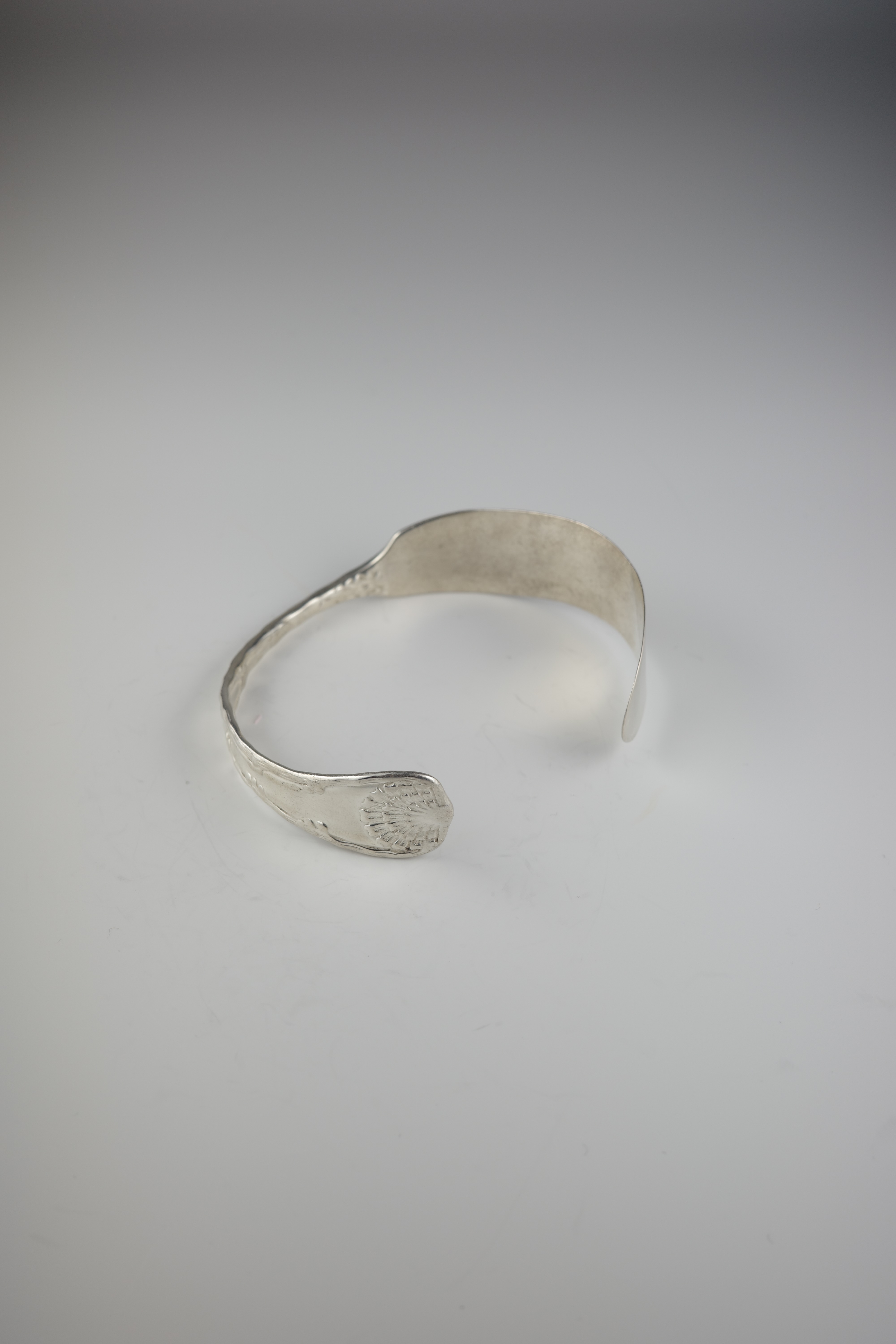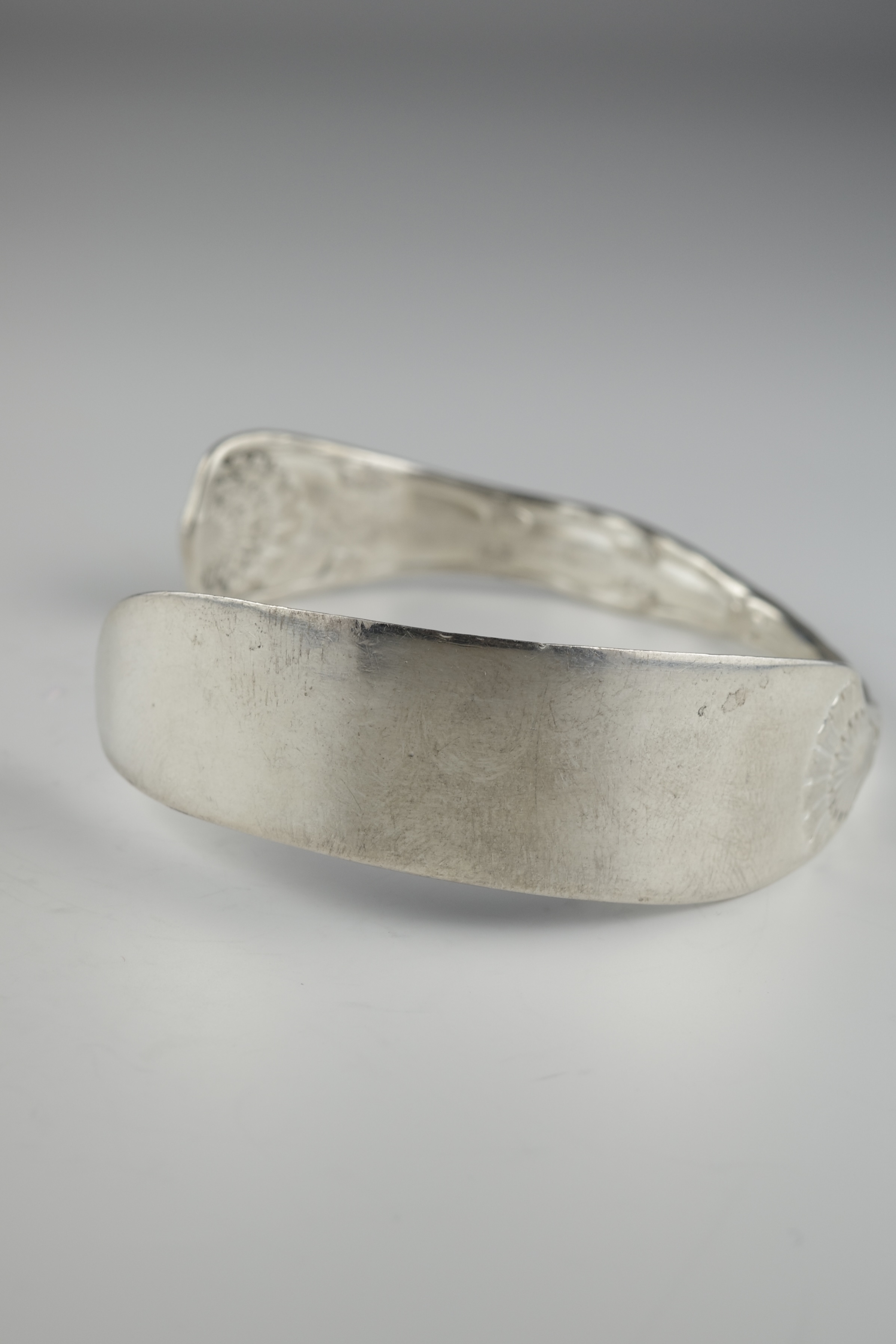 100年以上前に製造されたアンティークカトラリーを、職人の手作業によって現代のアートジュエリーへと昇華させた一点。当時の意匠や風合いを活かしながら再構築されており、量産品にはない独特の存在感が魅力です。それぞれ異なる背景を持つカトラリーから生まれているため、同じものがふたつと存在しない“一点物”としての価値を備えています。日常のスタイリングにさりげなく個性と奥行きを加えてくれる、唯一無二のアイテムです。