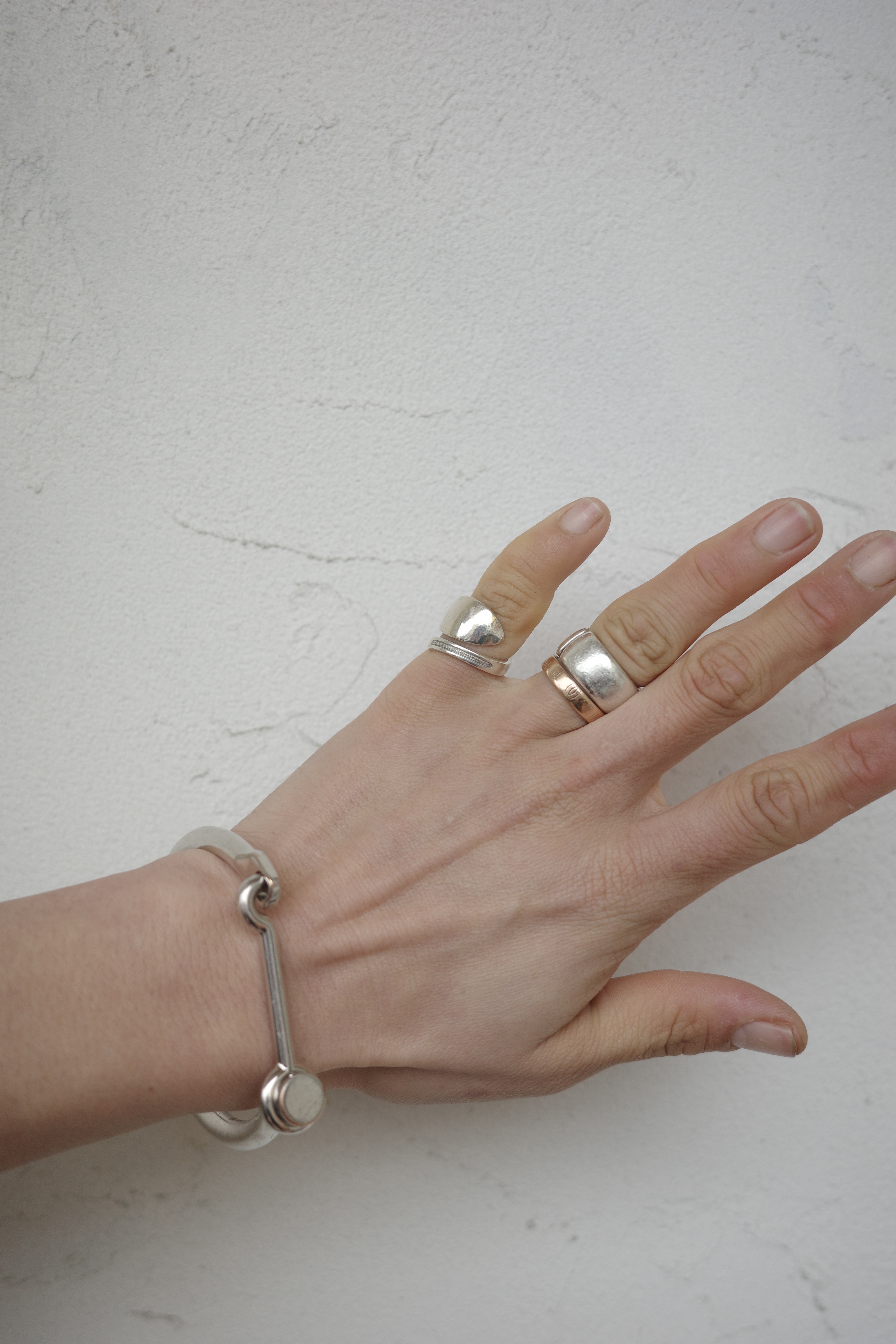100年以上前に製造されたアンティークカトラリーを、職人の手作業によって現代のアートジュエリーへと昇華させた一点。当時の意匠や風合いを活かしながら再構築されており、量産品にはない独特の存在感が魅力です。それぞれ異なる背景を持つカトラリーから生まれているため、同じものがふたつと存在しない“一点物”としての価値を備えています。日常のスタイリングにさりげなく個性と奥行きを加えてくれる、唯一無二のアイテムです。