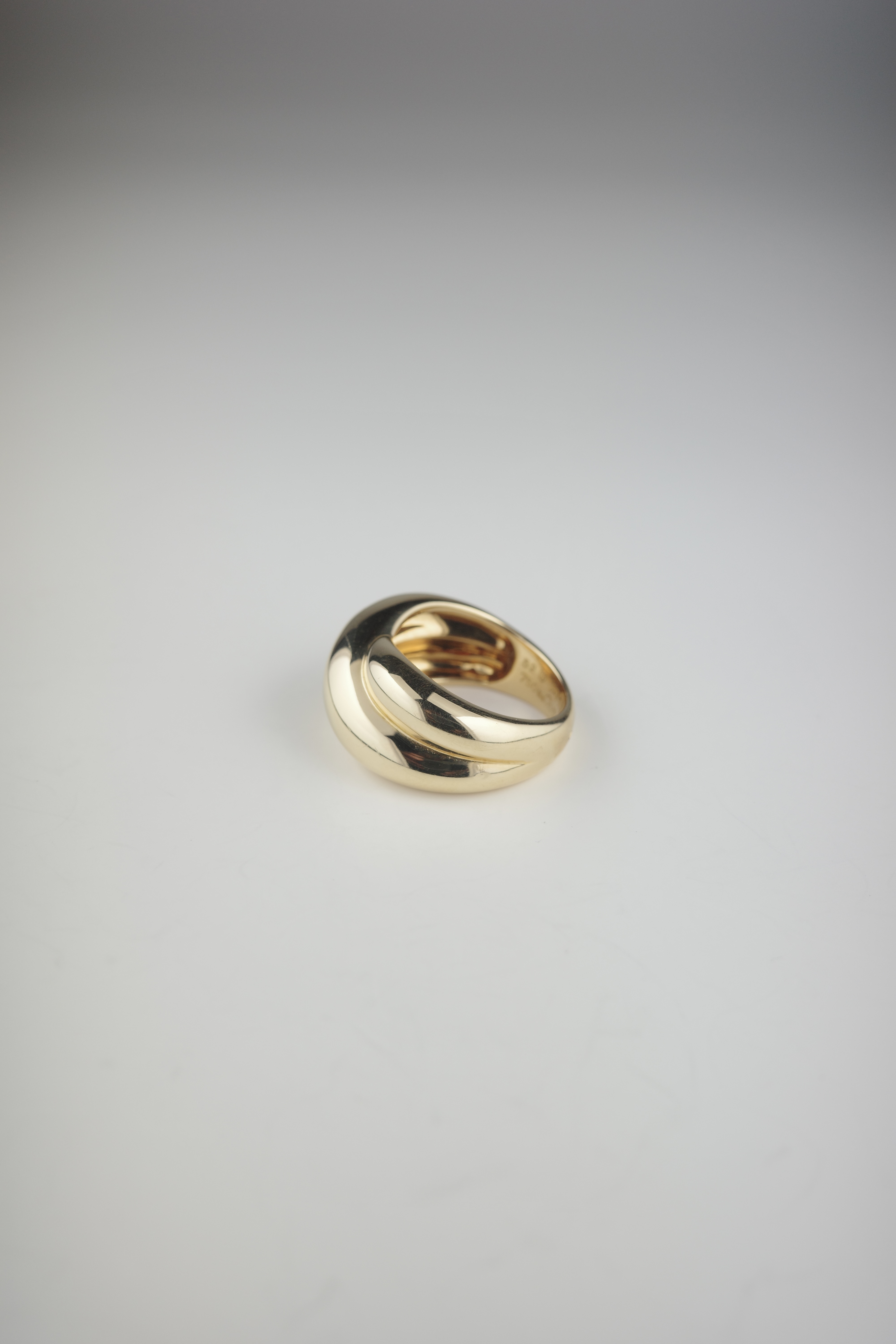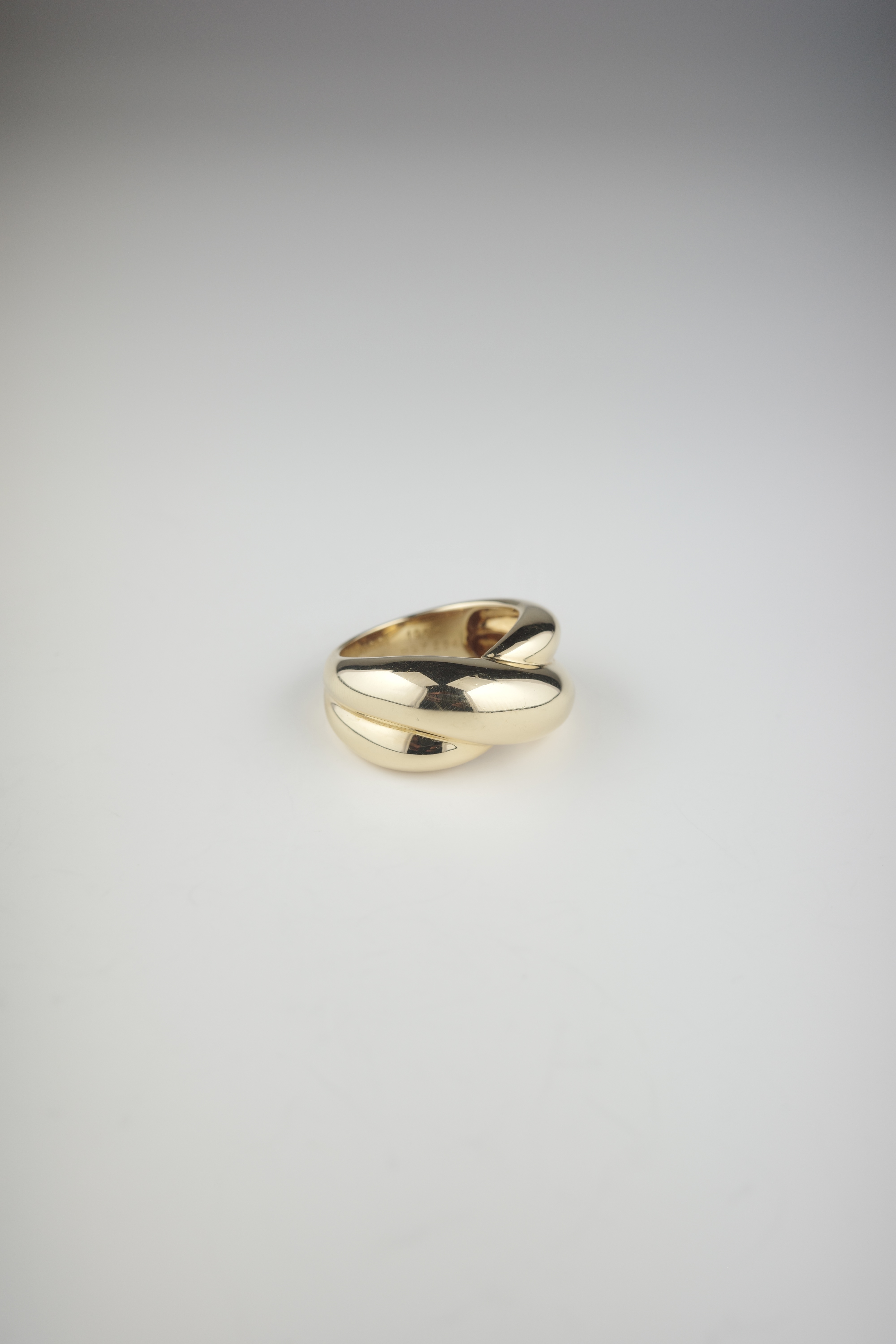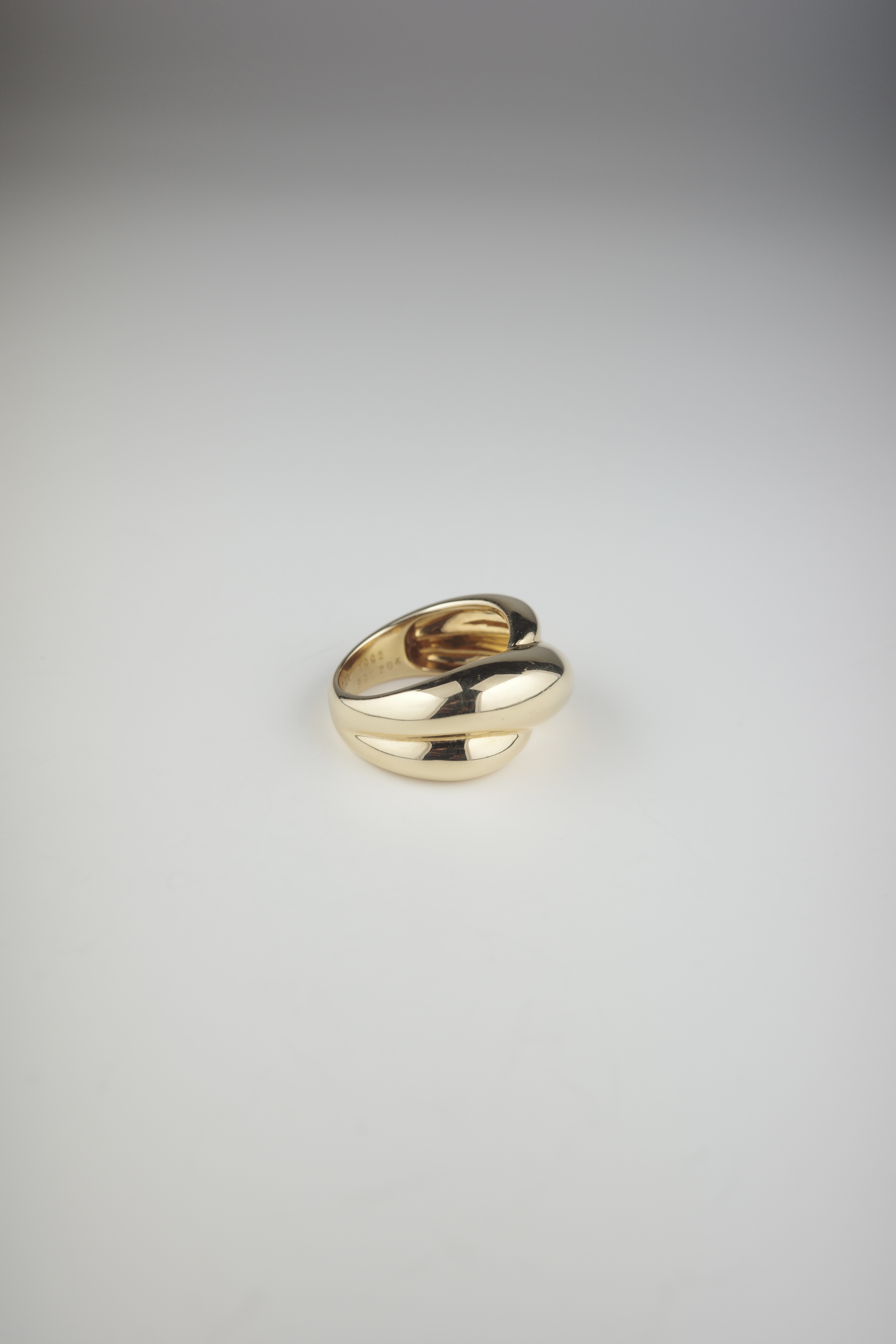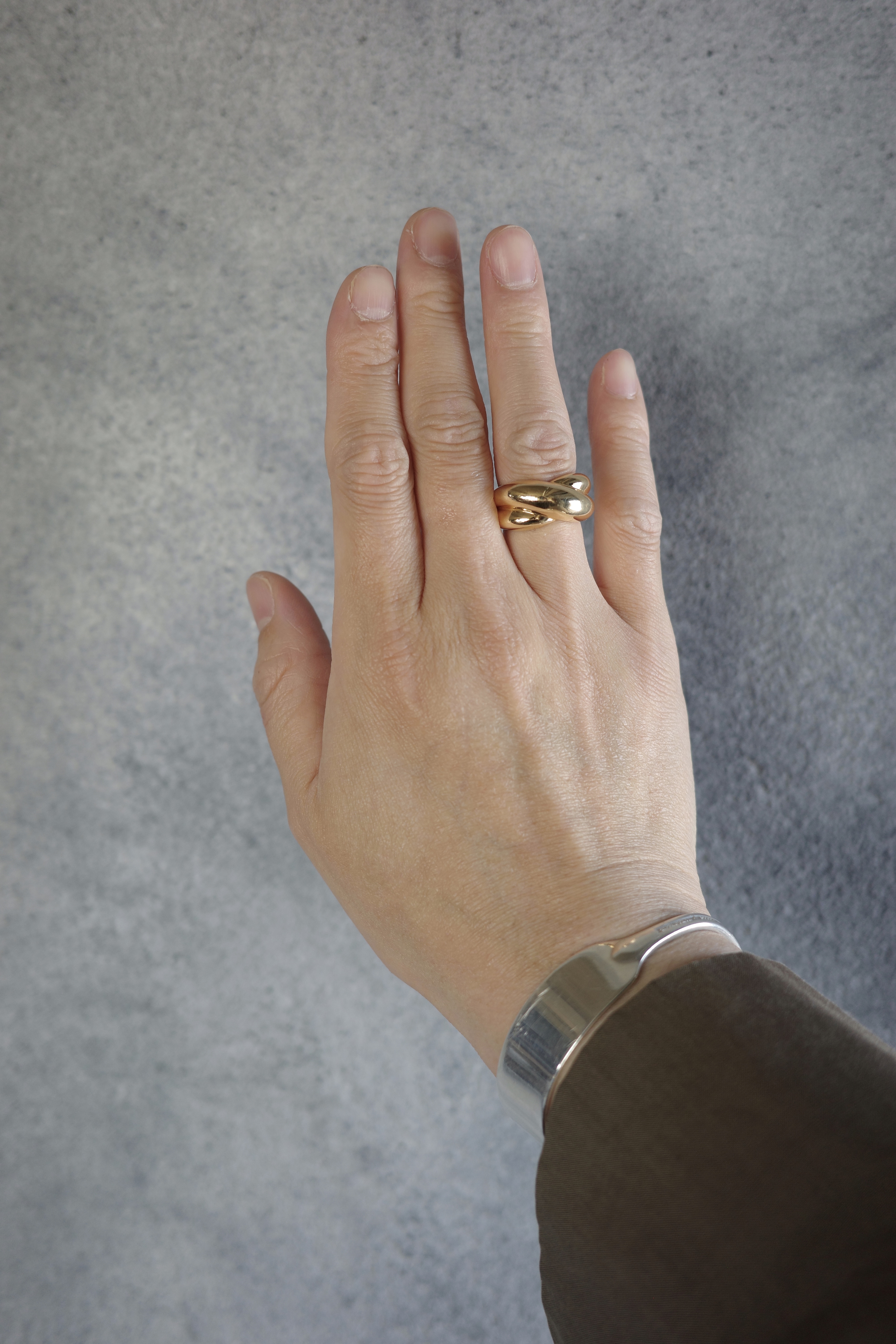 Cartierのヴィンテージコリゼリング。重なり合うような有機的なフォルムが特徴的で、滑らかな曲線美とボリューム感が指元に存在感をもたらします。シンプルでありながらも立体的な造形は、カルティエらしい洗練されたデザイン性が際立つアイテム。素材にはK18ゴールドを使用し、上品な艶と重量感を兼ね備えたラグジュアリーな仕上がり。現行では見られないヴィンテージ特有のデザインで、流通数も少なく希少性の高いアイテムです。単体での着用はもちろん、スタイリングの主役としても映える存在感のあるリング。時代を超えて愛される、カルティエの美意識が詰まった逸品。